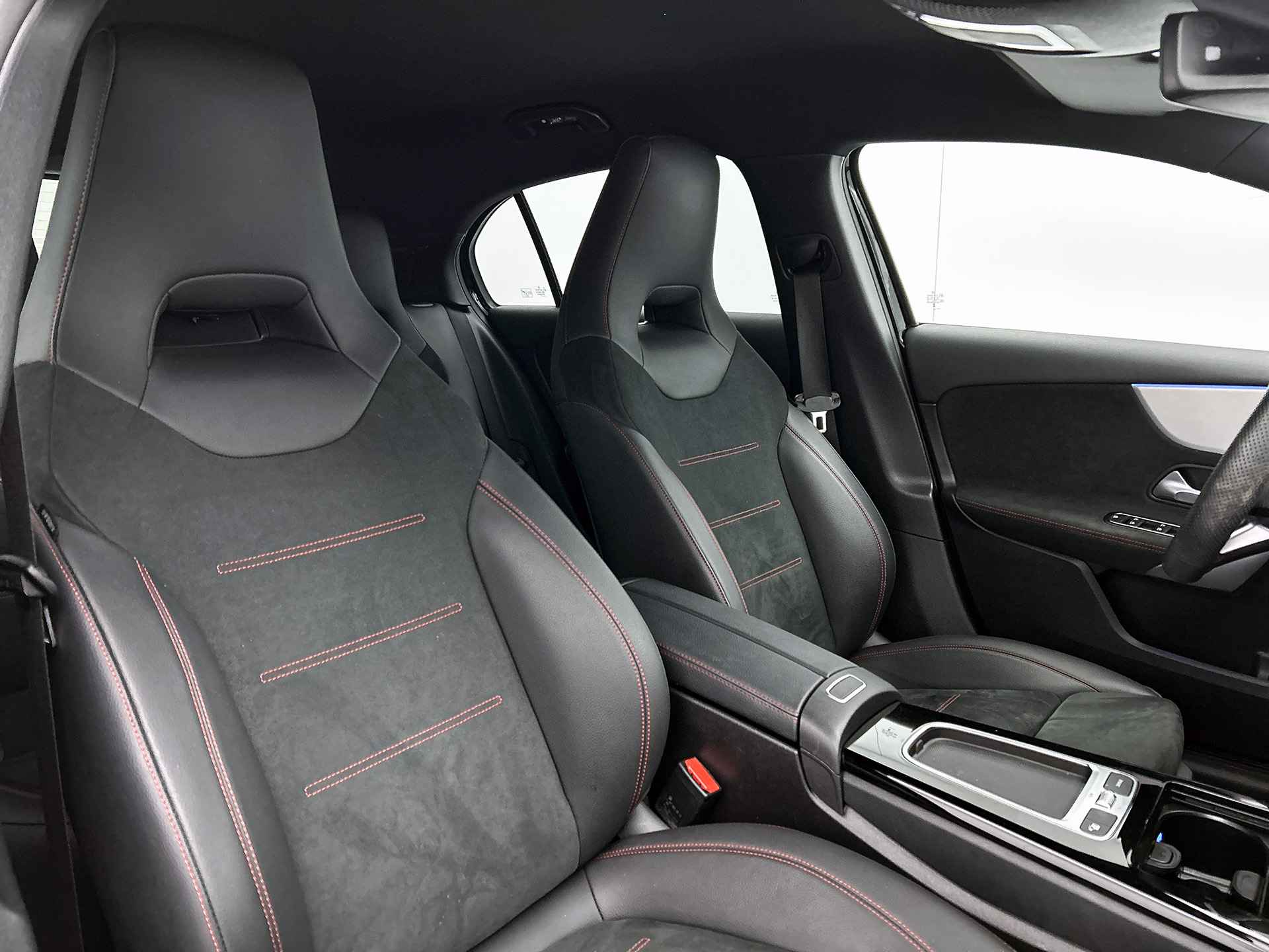 Je geniet van het rijplezier dat deze Mercedes-Benz A-klasse biedt. Iedere rit geeft jou weer nieuwe energie. Dankzij de geavanceerde techniek en uitgekiende veiligheidssystemen ben je ook altijd in controle. De begrippen exclusief en sportief zijn allebei van toepassing op de markante AMG-styling. Op de teller van deze auto staat slechts 9836 kilometer. Het beste van twee werelden komt samen in de hybride motor. Daarmee wordt deze Mercedes-Benz A-klasse aangedreven door zowel brandstof als door de elektrische accu, die al rijdend of remmend wordt bijgeladen. Zit je goed? De stoelen zijn eenvoudig instelbaar dankzij de elektrische bediening met geheugen. Zo'n verwarmd stuurwiel is een comfortabele extra, zeker in de winter. Bij de zeer complete uitrusting van deze auto behoren ook 19 inch lichtmetalen velgen, AMG-styling, warmtewerend glas, dynamisch onderstel, multibeam LED-verlichting en neerklapbare achterbank. Slimme ruitenwissers? De regensensor zorgt ervoor! Niet te snel, niet langzaam maar precies goed: laat dat maar over aan de cruise control. De Mercedes-Benz is standaard voorzien van: DAB+ radio, automatisch dimmende spiegels, Burmester surround sound systeem en bekerhouder. Het rijden met deze Mercedes-Benz wordt nog meer ontspannen dankzij de innovatieve technieken die onderweg over jouw veiligheid waken. De actieve dodehoekdetectie minimaliseert het gevaar van ongelukken wanneer je afslaat of inhaalt. Deze Mercedes-Benz A-klasse is voorzien van lane assist. Daarmee word je tijdig gewaarschuwd als je ongemerkt over de lijnen van je rijstrook gaat. Vanzelfsprekend leveren wij deze auto met Bovag Garantie. Wil jij met deze Mercedes-Benz A-klasse een proefrit maken? Bel of mail ons dan nu voor een afspraak.