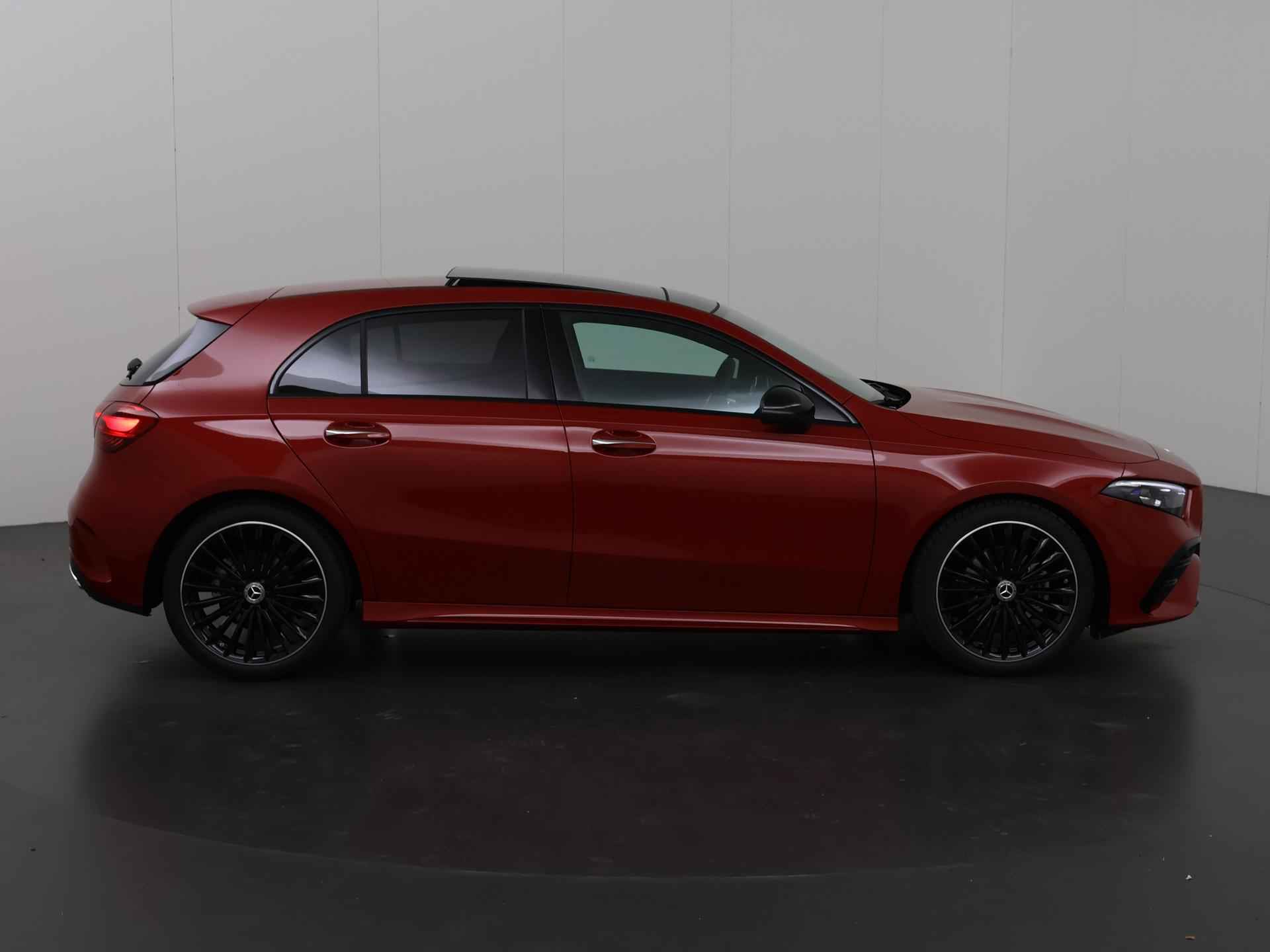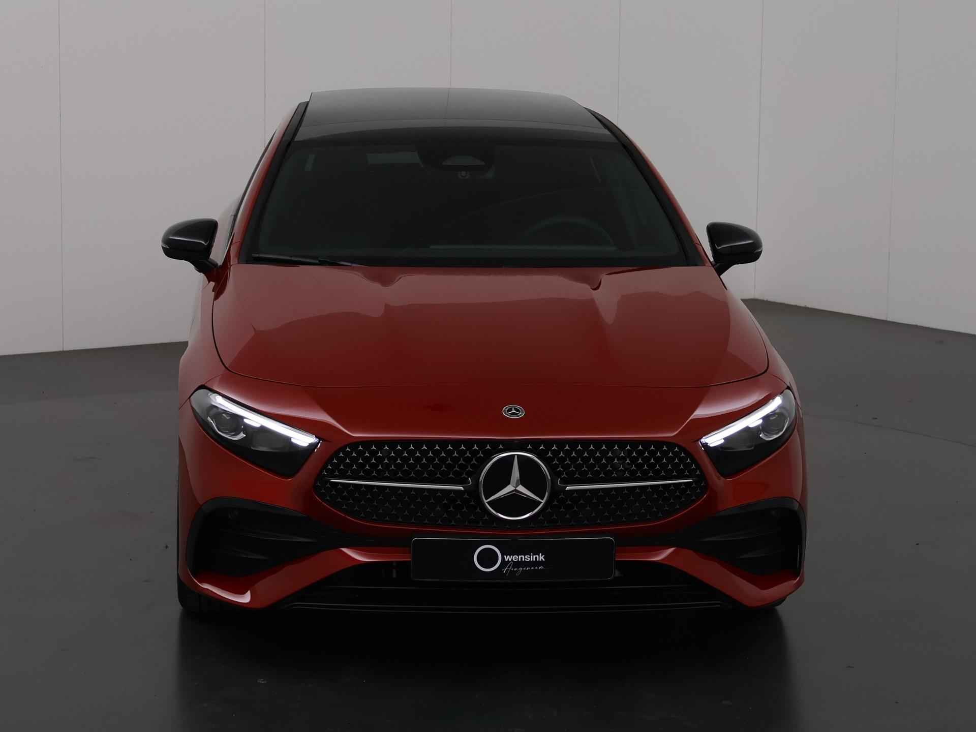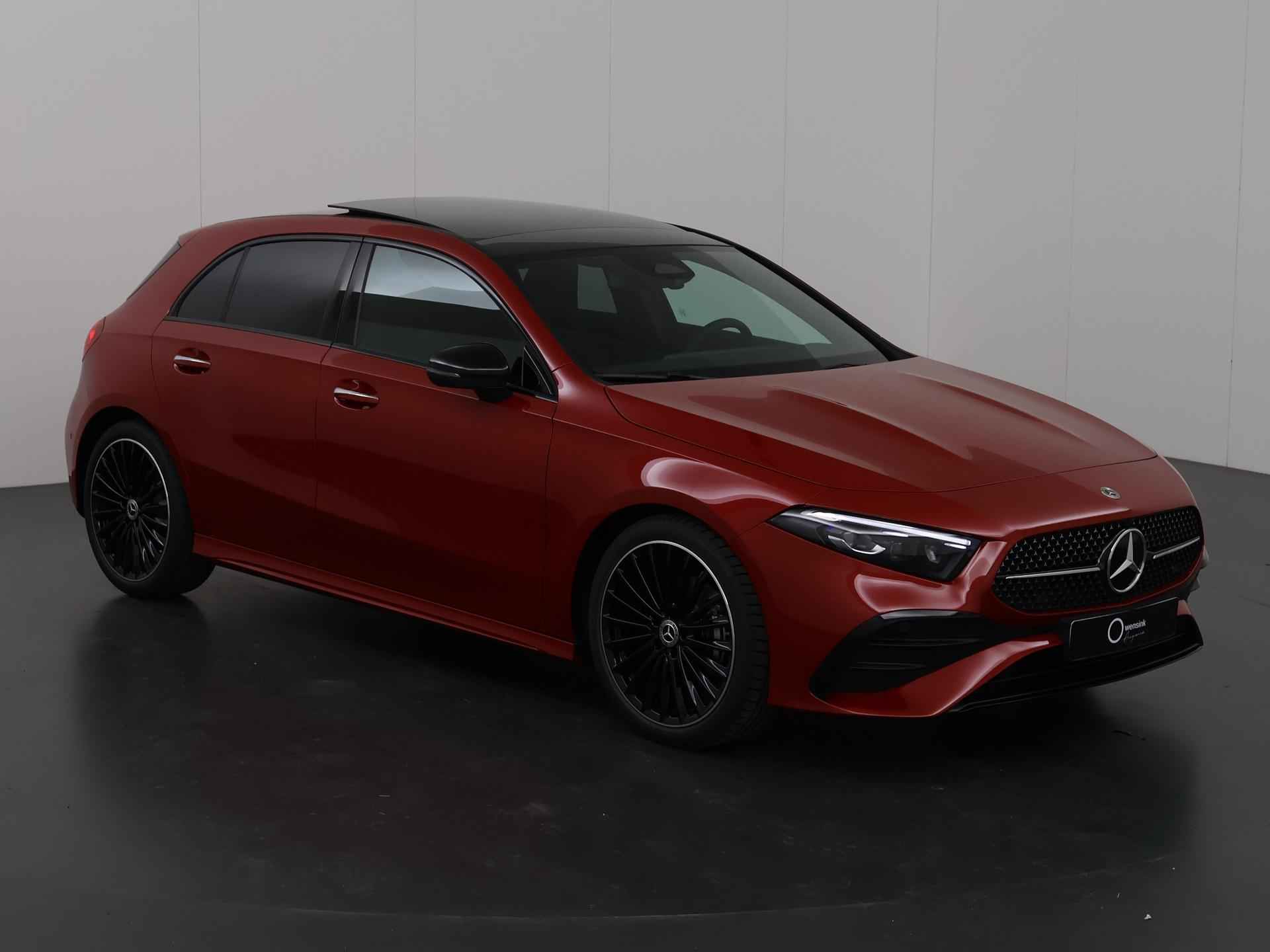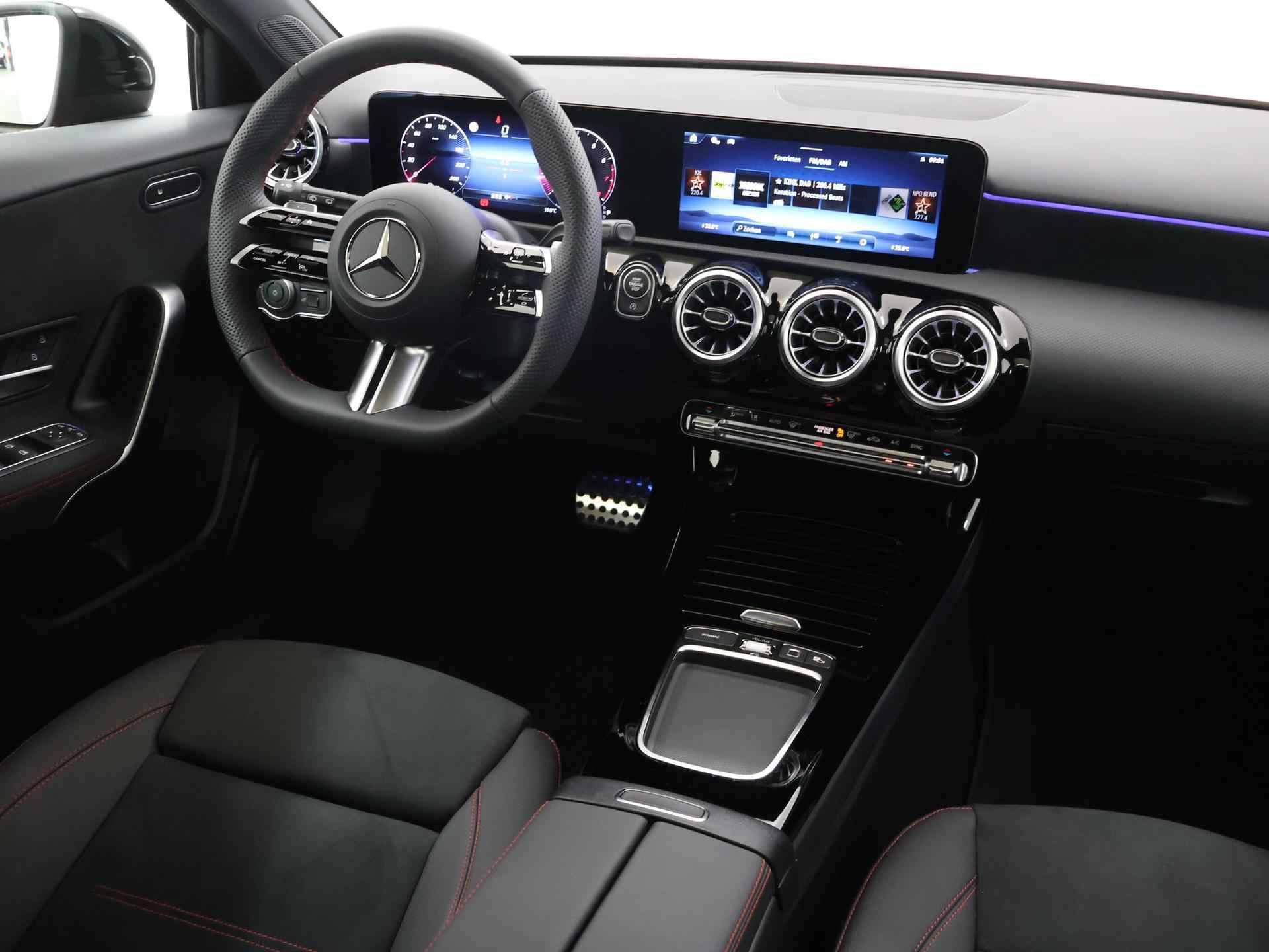 Zijn dynamische uiterlijk maakt al direct duidelijk wat voor rijervaring u van deze Mercedes-Benz A-Klasse mag verwachten: pure sportiviteit. AMG-styling benadrukt de sportieve functionaliteit van het ontwerp. Deze auto is bijna nieuw, ondanks dat hij uit 2025 komt; hij heeft slechts 1797 kilometer afgelegd. In deze auto vindt u een benzinemotor en een automatische transmissie. Doe maar luxe! Neem plaats in de verwarmbare voorstoelen en voel de weldaad in koude dagen. In deze sportstoelen voel je je één met je auto. Maximaal daglicht, royaal uitzicht: het glazen panoramadak zorgt ervoor! Vergeet halogeen; deze koplampen gebruiken de allernieuwste matrix LED-technologie met maximale lichtopbrengst zonder de tegenligger te hinderen. In deze Mercedes-Benz profiteert u onder andere ook van: AMG-styling, warmtewerend glas, trailer assistent, in delen neerklapbare achterbank, LED-achterlichten en verstelbare lendensteunen. Kommaar-kommaar-kommaar, aldus de achteruitrijcamera. Iedere centimeter vrije ruimte komt haarscherp in beeld. Schadevrij inparkeren maar! Oliepeil, bandenspanning, sloten en andere functies zijn via een speciale app overal te checken dankzij Connected Services. Het hoogwaardige audiosysteem is geïntegreerd met het navigatiesysteem met harde schijf. Via bluetooth beluister je podcasts en je persoonlijke playlists. En ook de radio is helemaal van nu, met DAB+. Deze Mercedes-Benz A-Klasse is een complete auto anno nu, en dat merk je. Bijvoorbeeld door de aanwezige draadloze oplaadmogelijkheid voor telefoons. Electronic climate control verwarmt of koelt het interieur met een druk op de knop. Ook sportstuur met schakelpaddels, regensensor, cruise control, keyless entry en automatisch dimmende binnenspiegel horen tot de voorzieningen op deze auto. U geniet nog meer van het rijden met uw Mercedes-Benz omdat u wordt beschermd door intelligente veiligheidssystemen. Het Lane-keeping systeem doet precies wat nodig is: waarschuwen en corrigeren bij onbedoelde overschrijding van de rijstrooklijnen. Bij concentratieverlies en toenemende vermoeidheid van de bestuurder, geeft de auto een sterk signaal om u weer bij de les te houden. Hierdoor kunnen veel ongelukken voorkomen worden. Bovenop deze veiligheidsfeatures heeft deze Mercedes-Benz bovendien autonoom remsysteem en bandenspanningcontrolesysteem. Wilt u meer weten over deze auto? Neem dan contact met ons op voor een proefrit.