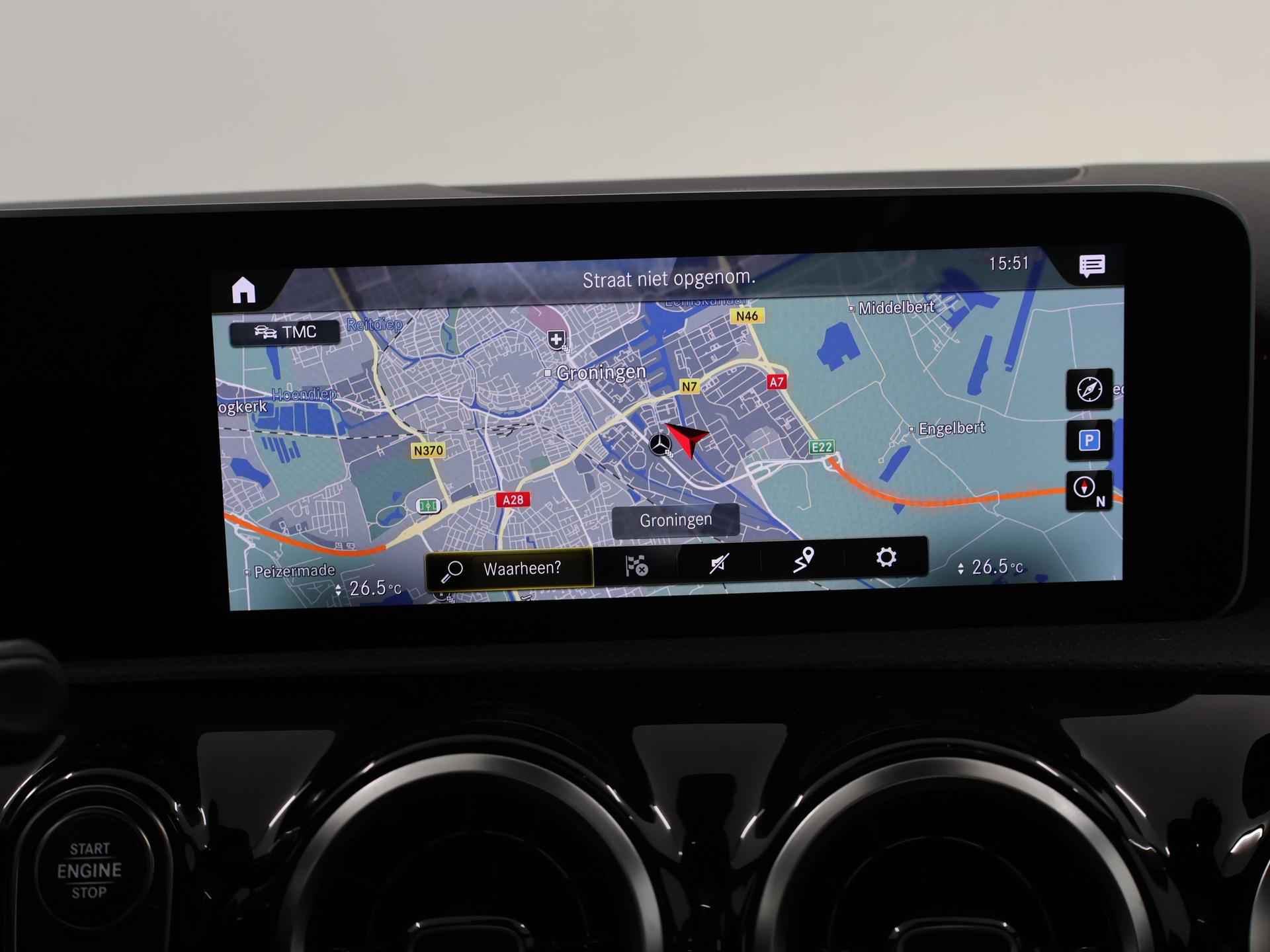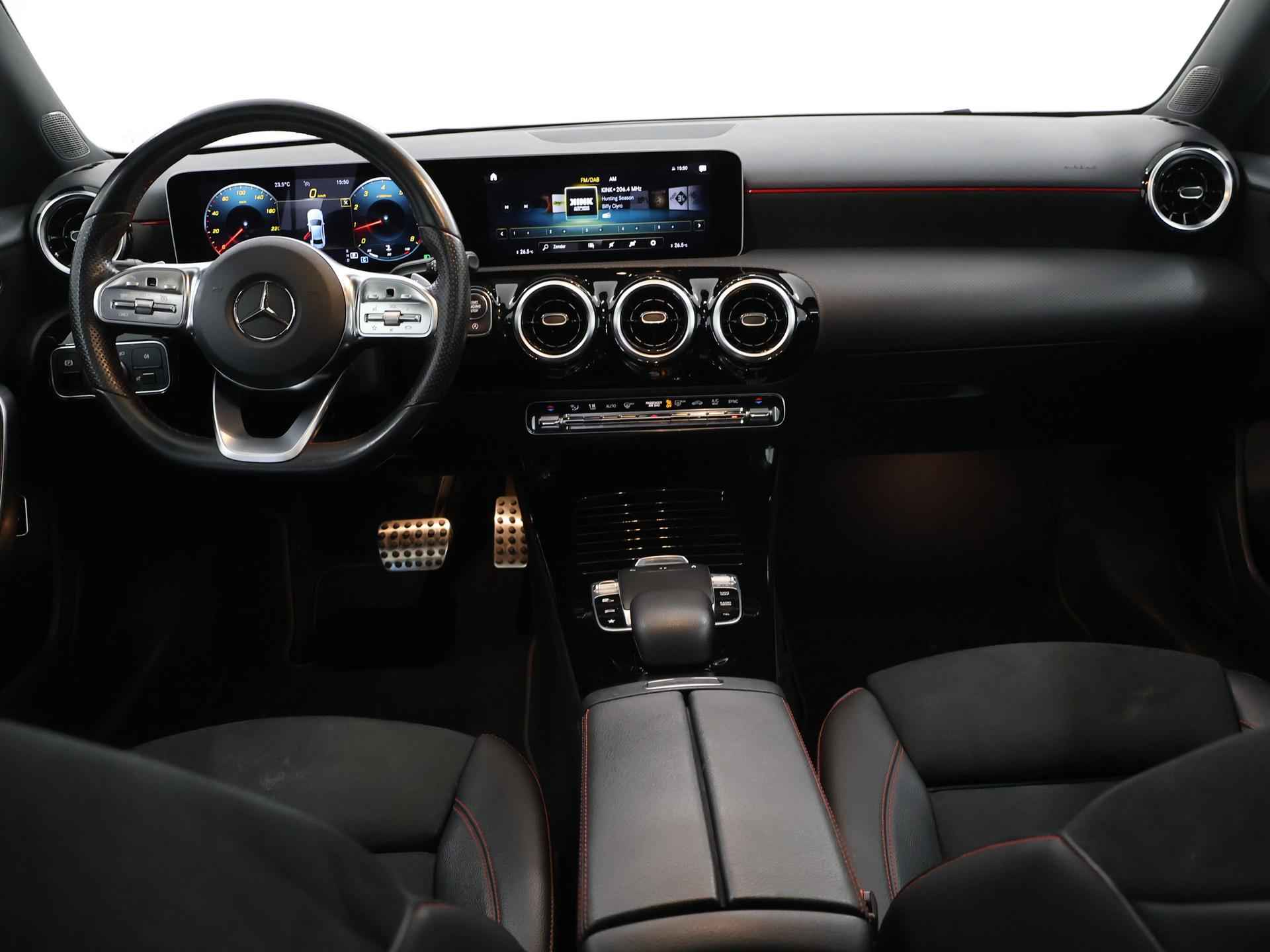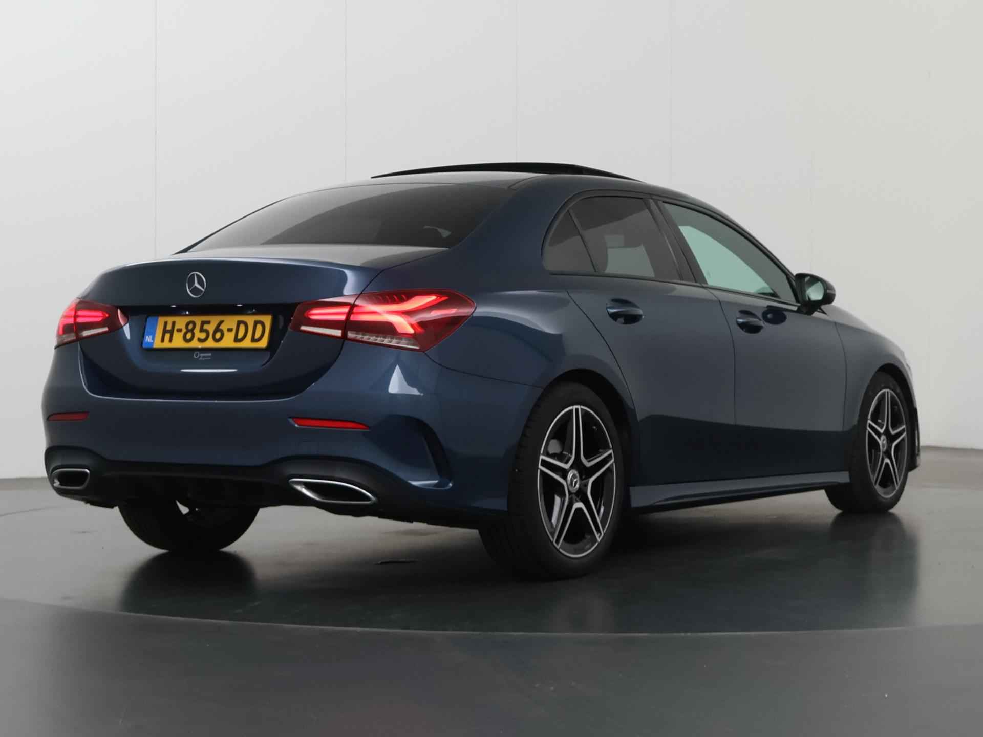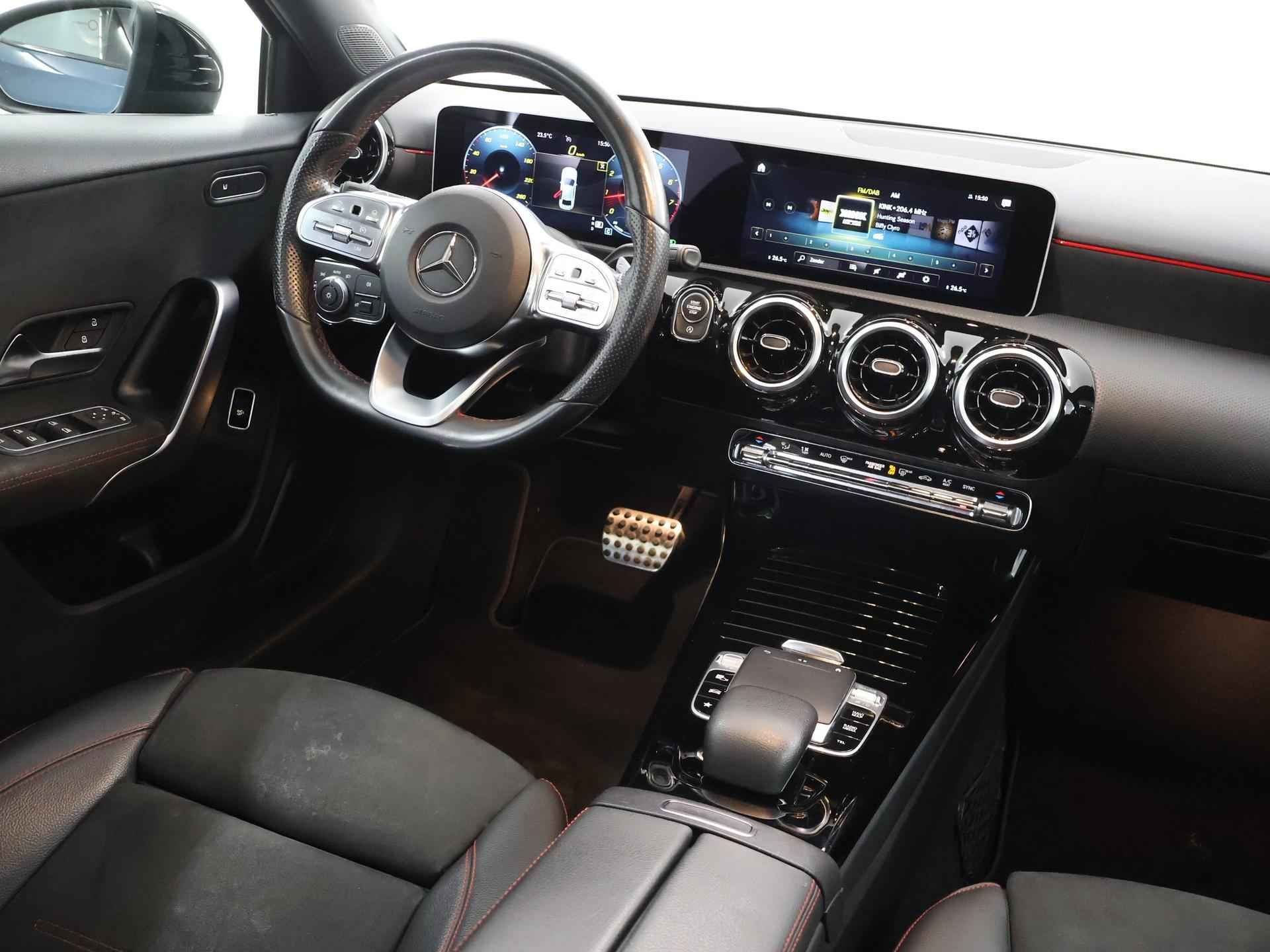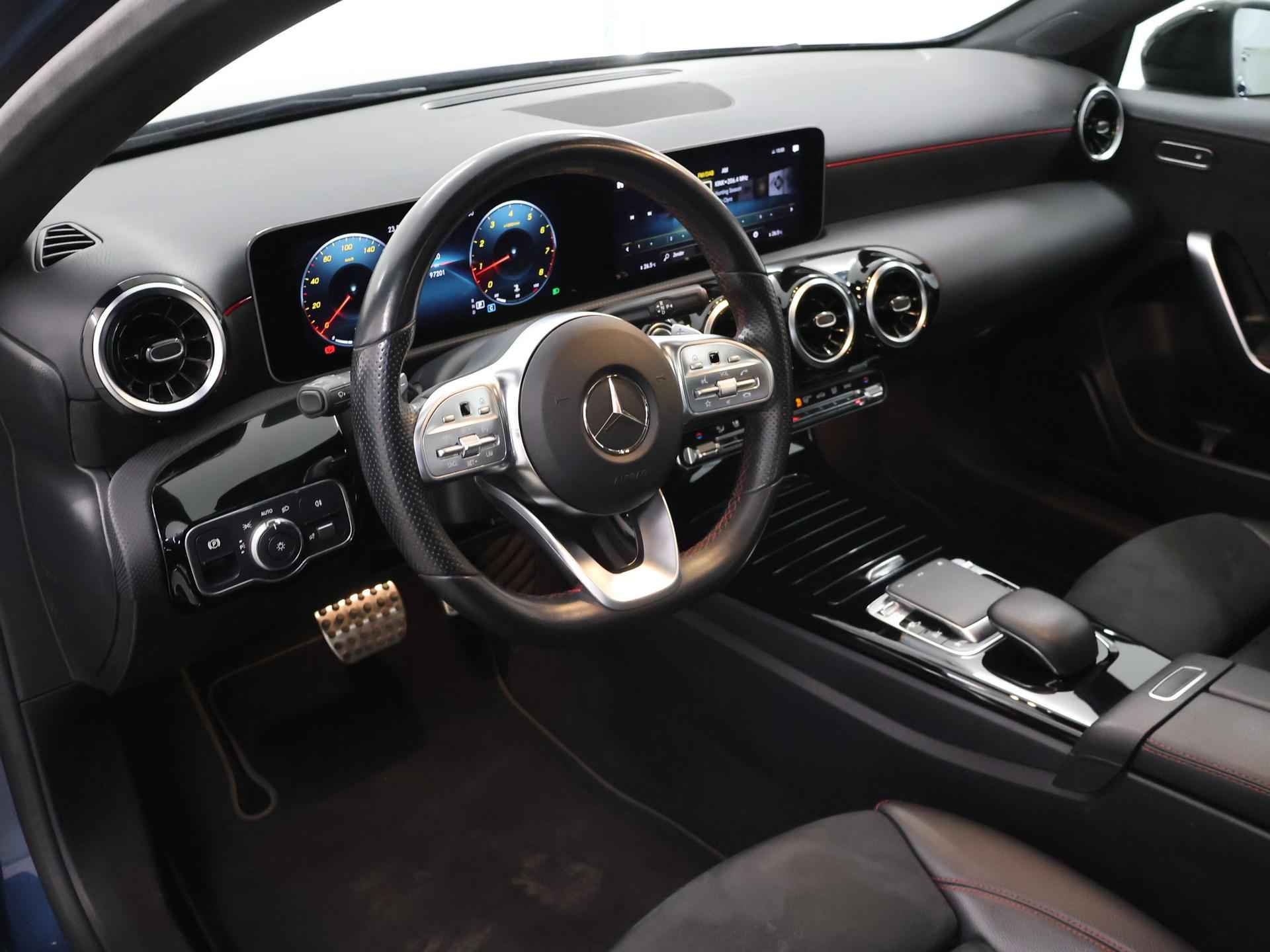 Vroeg of laat wilt u geen auto, maar een Mercedes. 'The best or nothing'. Omdat het oog ook wat wil, is de AMG-styling een heel aantrekkelijke plus. Hij heeft een benzinemotor en een automatische transmissie. Hoe koud het buiten ook is, de stoelverwarming geeft u meteen een behaaglijk gevoel. Life is easy! In ieder geval met dit elektrisch bediende glazen panoramadak. In deze auto profiteert u onder andere ook van: 18 inch lichtmetalen velgen, LED koplampen, AMG-styling, donker getint glas achter, in delen neerklapbare achterbank en LED-achterlichten. Het eigentijdse interieur wordt natuurlijk helemaal volmaakt met het digitale dashboard. Inparkeren? Met de achteruitrijcamera heeft u er geen omkijken meer naar! Spraaksturing maakt het eenvoudiger en veiliger om deze auto onderweg te bedienen. Hoe is het met de banden, de accu en andere onderdelen? Connected Services maakt het inzichtelijk, 24/7 via de app. Nooit meer de weg kwijt: daarvoor zorgt het onboard navigatiesysteem met harde schijf. Met automatische airconditioning, DAB ontvangst, regensensor, cruise control, sportstuurwiel en automatisch dimmende buitenspiegels is deze Mercedes-Benz helemaal compleet. De nieuwste veiligheidssystemen komen in deze Mercedes-Benz A-klasse samen. Bij de veiligheidssystemen van deze auto hoort ook de verkeersbord-detectie. Die leest tijdens het rijden als het ware met u mee en attendeert u op de significante verkeersborden langs en boven de weg. Met het Lane-keeping systeem gaat u nooit onbedoeld over de streep. De Brake Assist vergroot de veiligheid door bij een noodsituatie extra power te leveren op het remsysteem. Wij kunnen ons goed voorstellen dat u deze Mercedes-Benz wilt aanschaffen. Wacht daar dan niet mee en reserveer hem nu direct. Dan nemen wij zo snel mogelijk contact met u op om de aflevering te bespreken.