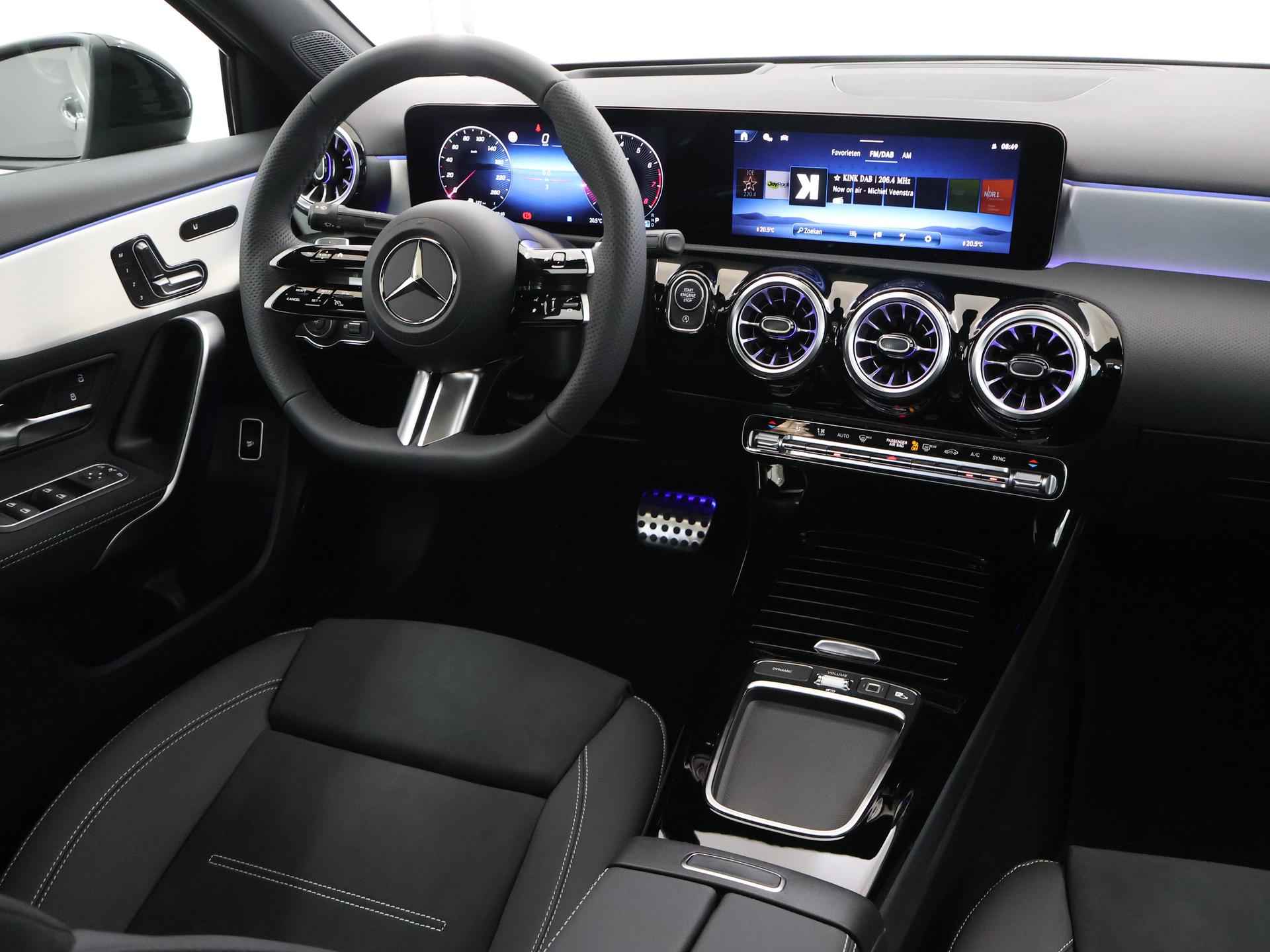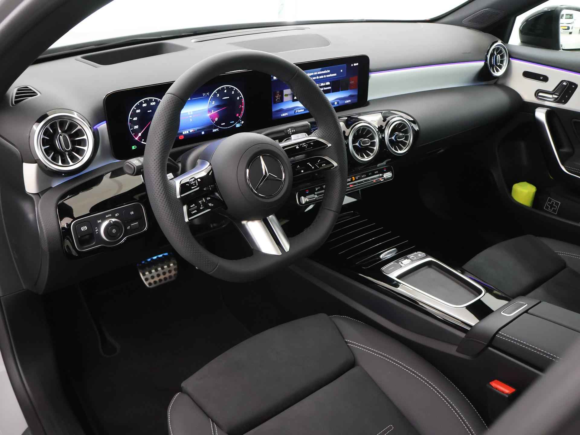 Dit is een demonstratieauto waardoor de actuele kilometerstand kan afwijken. Kiest u voor het Wensink Zekerheidspakket van € 895,- dan krijgt u er o.a. 12 maanden BOVAG garantie bij (bij auto’s t/m 4 jaar). Zo gaat u helemaal zorgeloos op pad. Ziet u zichzelf al een proefrit maken? We ontvangen u graag in onze showroom voor deze occasion. Informeer naar onze voorwaarden en wijzigingen voorbehouden. Natuurlijk mag u hoge eisen stellen aan een echte auto. Doen ze bij Mercedes ook. 'The best or nothing'. AMG-styling vertegenwoordigt de overtreffende trap in smaakvolle sportiviteit. Deze gloednieuwe auto is per direct uit onze voorraad leverbaar. De aandrijving van deze Mercedes-Benz komt voor rekening van een viercilinder benzinemotor en een automatische transmissie. Dankzij de elektrische stoelbediening is het gemakkelijk om de optimale zitpositie te vinden. De elektrisch bedienbare achterklep opent met een druk op de knop. Het glazen panoramadak zorgt voor een onovertroffen uitzicht. De matrix LED-verlichting in de koplampen bestaat uit een raster van lichtpunten met maximale opbrengst. Bij tegenliggers past het systeem precies die punten aan die hinderlijk kunnen zijn. U behoudt maximaal zicht! Bij de uitrusting van deze Mercedes-Benz horen onder meer 19 inch lichtmetalen velgen, AMG-styling, warmtewerend glas, in delen neerklapbare achterbank, LED-achterlichten en verstelbare lendensteunen. Het gebruik van de 360 graden camera op deze auto helpt u bij het navigeren door lastige rijbanen en het drukke stadsverkeer. Connected Services voegt nog meer comfort en veiligheid toe aan deze auto. Een subliem geluidsspectrum wordt onder alle omstandigheden geleverd door het high performance audiosysteem. Altijd een deskundige gids aan boord, dankzij het navigatiesysteem met harde schijf. Met electronic climate control hoeft u alleen de gewenste temperatuur in te stellen. Het systeem doet de rest. Wat u ook in deze auto kunt vinden zijn sportstuur met schakelpaddels, draadloos opladen, DAB ontvangst, regensensor, cruise control en keyless entry. Als bestuurder van deze Mercedes-Benz bent u nooit alleen. U wordt onderweg bijgestaan door technologische hulpmiddelen die samen met u de weg in de gaten houden. Als het nodig is, grijpen ze zelfs in, door te remmen of bij te sturen. Eyes on the road! Dat kan iedere seconde, dankzij de head-up display, die informatie projecteert op de voorruit. Het Lane-keeping systeem zorgt dat u mooi binnen de lijntjes blijft. Ongemerkt buiten de rijstrook komen is er niet meer bij. Het laatste wat u wilt is dat u achter het stuur indommelt. Om dat te voorkomen is deze auto uitgerust met vermoeidheidsherkenning. De veiligheid van deze auto wordt verder verhoogd door dodehoekdetectie, autonoom remsysteem en bandenspanningcontrolesysteem. Als u wilt, kunt u al snel rijden met uw nieuwe A-klasse. Onze verkoopadviseurs staan klaar om u de auto te laten zien. Dan leggen ze u meteen uit welke financieringsvormen we erbij kunnen aanbieden. Tot ziens in onze showroom!