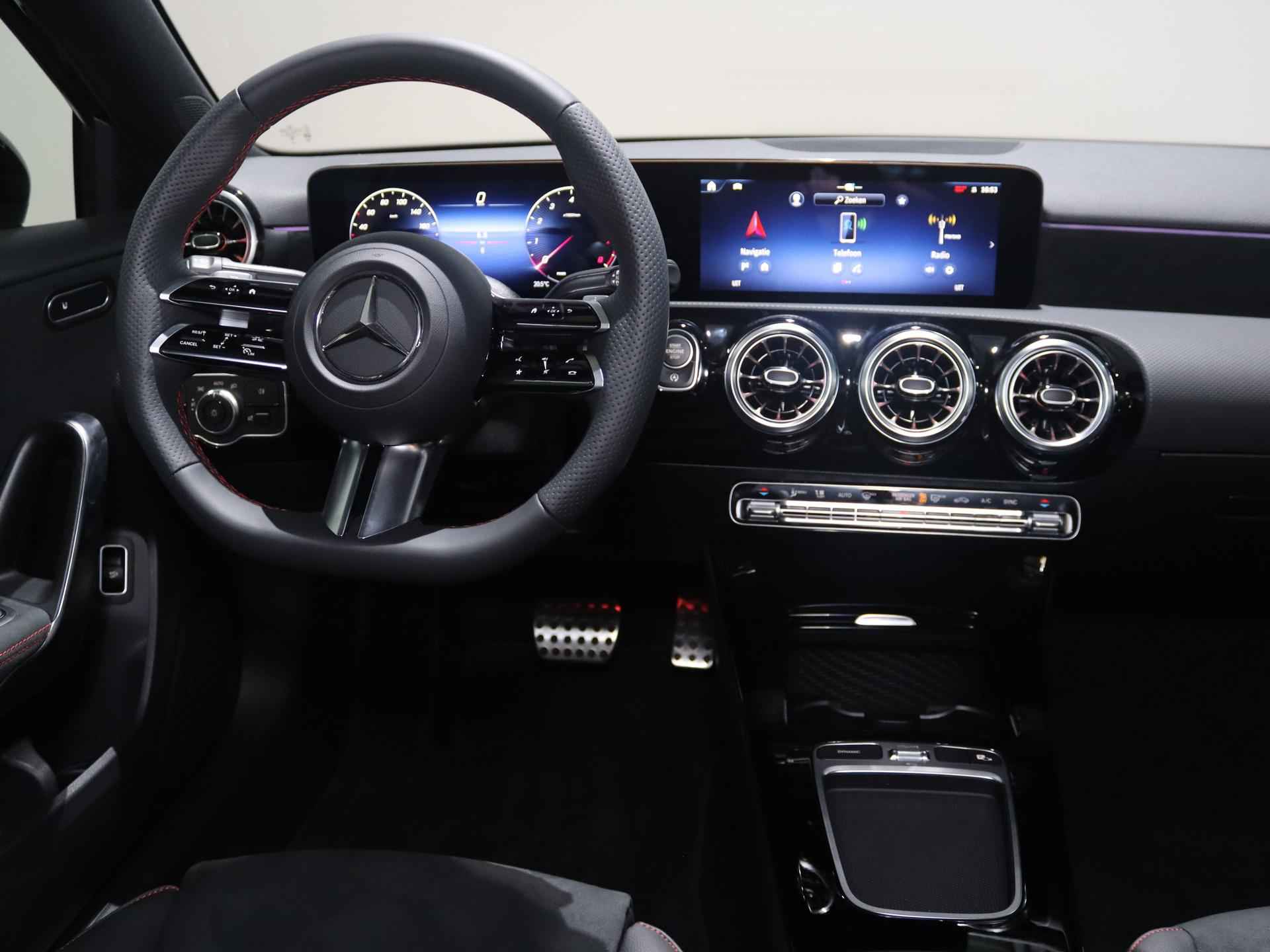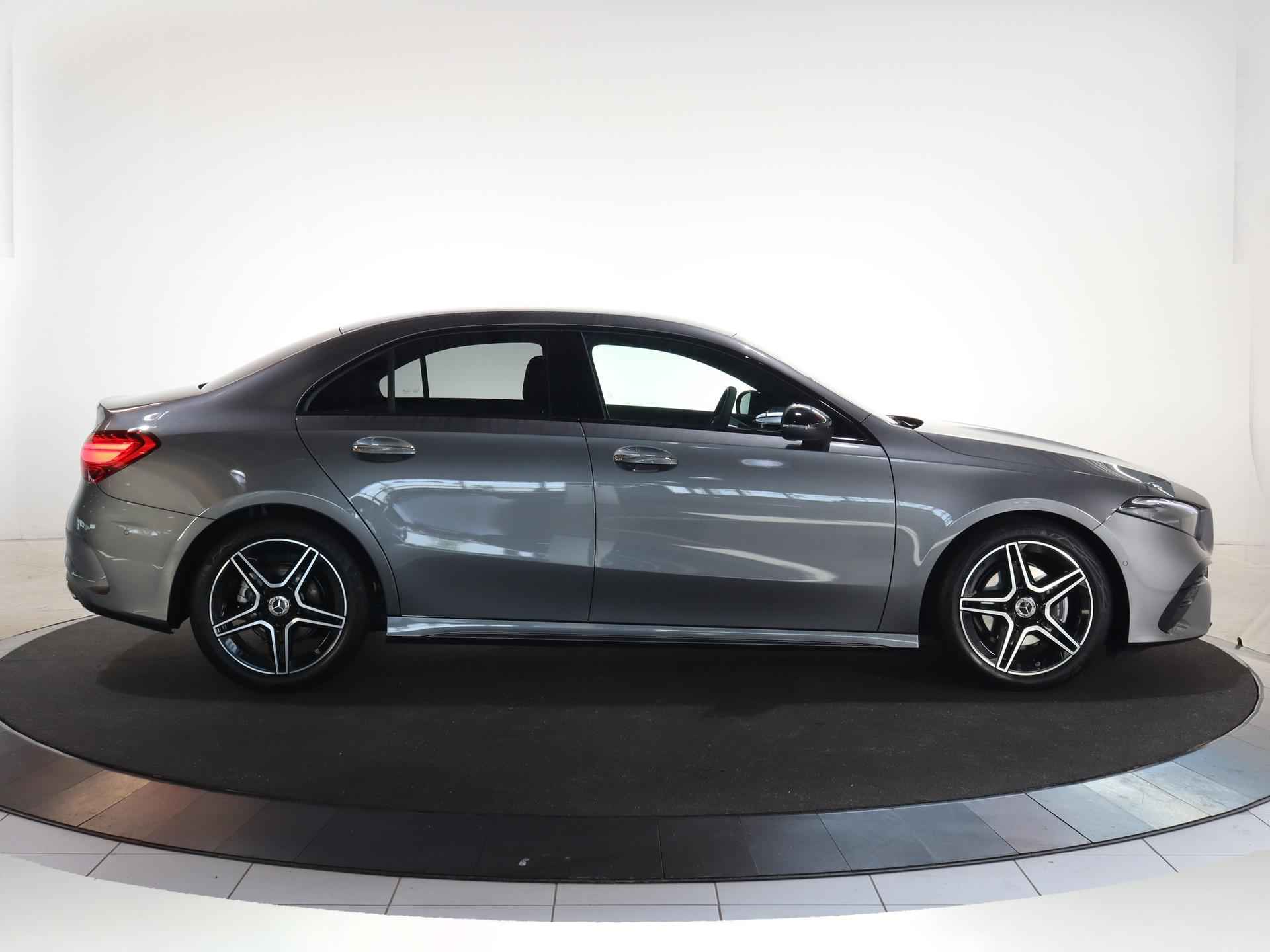 Dit is een demonstratieauto waardoor de actuele kilometerstand kan afwijken. Kiest u voor het Wensink Zekerheidspakket van € 895,- dan krijgt u er o.a. 12 maanden BOVAG garantie bij  (bij auto’s t/m 4 jaar). Zo gaat u helemaal zorgeloos op pad. Ziet u zichzelf al een proefrit maken? We ontvangen u graag in onze showroom voor deze occasion. Informeer naar onze voorwaarden en wijzigingen voorbehouden. Van een auto mag u het nodige verwachten, vinden ze bij Mercedes. Topkwaliteit in alle opzichten, vandaar de slogan 'The best or nothing'. Hier ziet u een perfect voorbeeld. De elegante lijnvoering wordt versterkt door subtiele AMG-styling details. Het gaat hier om een nieuwe auto, die uit voorraad leverbaar is. De aandrijving van deze Mercedes-Benz wordt verzorgd door een viercilinder benzinemotor en een automatische transmissie. De stoelen zijn verwarmd en bieden ook in winterse kou een comfortabele zit. Tot de uitrusting van deze Mercedes-Benz behoren ook 18 inch lichtmetalen velgen, LED koplampen, AMG-styling, donker getint glas achter, in delen neerklapbare achterbank en LED-achterlichten. Over het digitale dashboard is goed nagedacht. Alle belangrijke functies binnen en buiten in één oogopslag. Kom maar, kom maar, kom maar... ho! Prettig hoor, zo'n achteruitrijcamera. Spraakbediening herkent uw stem en voert opdrachten uit terwijl u beide handen aan het stuur houdt. Pech oplossen en zelfs voorkomen? Gaat eenvoudig. Via Connected Services heeft u alle data in de hand, gewoon op de smartphone! Van A naar B zonder omwegen: altijd uw eigen navigatiesysteem met harde schijf aan boord! Wat u ook in deze auto kunt vinden zijn WIFI-hotspot, electronic climate control, sportstuur met schakelpaddels, draadloos opladen, DAB ontvangst en regensensor. De intelligente veiligheidssystemen in deze auto waken continu over uw veiligheid. Onbedoeld buiten de rijstrook raken wordt voorkomen door het Lane-keeping systeem. Het risico van een kop-staartbotsing wordt aanzienlijk verminderd door de forward collision warning. Vermoeidsheidsherkenning herkent tekenen van vermoeidheid bij de bestuurder. Het systeem voorkomt dat er ongelukken gebeuren doordat de bestuurder in slaap valt. De veiligheid van deze auto wordt verder verhoogd door dodehoekdetectie, autonoom remsysteem en bandenspanningcontrolesysteem. Natuurlijk is dit een splinternieuwe auto en hij wordt dus geleverd met volledige fabrieksgarantie. Daarbij kunnen we u verschillende gunstige financieringsvormen aanbieden. We maken graag een afspraak met u.