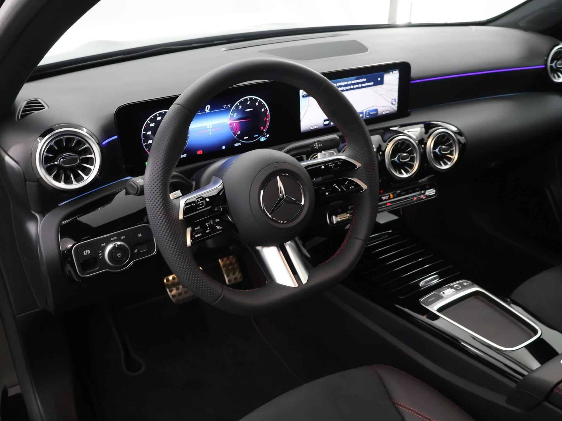 Het is niet alleen maar een stoer uiterlijk, deze Mercedes-Benz A-klasse biedt ook de sportieve rijkwaliteiten die u zoekt. Het AMG-styling pakket maakt direct duidelijk waar deze Mercedes-Benz voor staat: onversneden sportiviteit en rijdynamiek. De aandrijving van deze Mercedes-Benz wordt verzorgd door een viercilinder benzinemotor en een automatische transmissie. De verwarmbare voorstoelen zijn een heerlijke extra optie, waarmee u uzelf en uw bijrijder een groot plezier doet. Voor het pittige uiterlijk én goed gesteund zitten zorgen de sportstoelen. Zon en frisse lucht krijgen vrij spel dankzij het elektrisch bediende glazen panoramadak. Verblinding van tegenliggers is er niet meer bij, dankzij de koplampen met matrix LED-verlichting. En toch de kwaliteit van daglicht in het donker! Bij de zeer complete uitrusting van deze auto behoren ook 19 inch lichtmetalen velgen, AMG-styling, donker getint glas achter, in delen neerklapbare achterbank, LED-achterlichten en verstelbare lendensteunen. Ervaar de wonderen van de digitale mobiliteitswereld waarbij alles wat u wenst op het digitale dashboard verschijnt. Soepel inparkeren in de krapste parkeervakken. De achteruitrijcamera maakt het mogelijk. Met de ingebouwde spraakbediening kunt u de belangrijkste voertuigsystemen bedienen met stemcommando's. De ingebouwde Connected Services vertellen u via de app alles over de status van de auto. Locatie, onderhoudsstatus, brandstofpeil en nog veel meer! De snelste of zuinigste weg? Het navigatiesysteem met harde schijf aan boord wijst de juiste weg! Ook WIFI-hotspot, electronic climate control, sportstuur met schakelpaddels, draadloos opladen, DAB ontvangst en regensensor zijn aan boord. Als bestuurder van deze Mercedes-Benz bent u nooit alleen. U wordt onderweg bijgestaan door technologische hulpmiddelen die samen met u de weg in de gaten houden. Als het nodig is, grijpen ze zelfs in, door te remmen of bij te sturen. Het Lane-keeping systeem registreert permanent of u binnen de lijnen van de rijstrook blijft; dwaalt u onbedoeld af, dan waarschuwt het systeem en corrigeert de koers. Onbedoeld bumperkleven is er niet bij, dankzij de forward collision warning. Die waarschuwt direct als een botsrisico met uw voorligger dreigt. Vermoeidsheidsherkenning herkent tekenen van vermoeidheid bij de bestuurder. Het systeem voorkomt dat er ongelukken gebeuren doordat de bestuurder in slaap valt. Dankzij veiligheidsvoorzieningen als autonoom remsysteem en bandenspanningcontrolesysteem, bent u steeds veilig onderweg. Neem contact op voor een afspraak en laat een proefrit het bewijs leveren! Wij zijn Wensink, aangenaam. In onze Wensink Winkels bent u altijd welkom. U kunt bij ons elke dag kiezen uit nieuwe auto's en meer dan 1.500 kwaliteits-occasions tot 8 jaar die stuk voor stuk professioneel zijn geselecteerd, gecheckt en klaargemaakt door onze vakmensen. Echt aangenaam rijden noemen we dat. In onze winkel vindt u alles wat u nodig heeft om zorgeloos te rijden; verzekering, financiering, leasing, onderhoudsabonnementen, laadpaaloplossingen, en meer bij ons vindt u het. En het mooiste? U bepaalt zelf hoe en wanneer u uw auto wil kopen, volledig online en afgeleverd bij u thuis of via één van onze winkels dicht bij u in de buurt. U bepaalt.