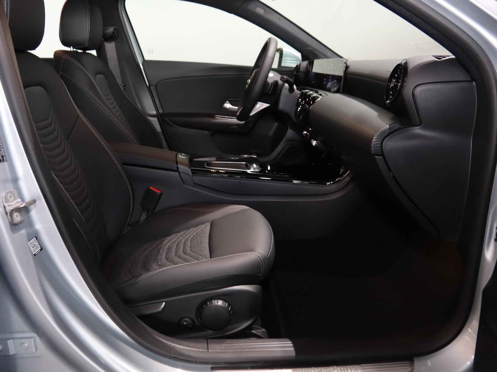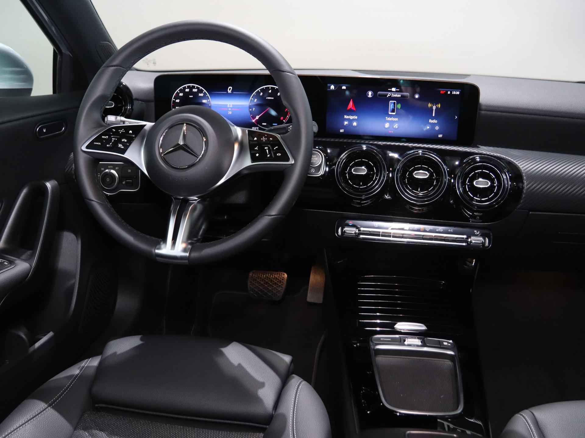 Dit is een demonstratieauto waardoor de actuele kilometerstand kan afwijken. Kiest u voor het Wensink Zekerheidspakket van € 895,- dan krijgt u er o.a. 24 maanden Certified garantie bij. Zo gaat u helemaal zorgeloos op pad. Ziet u zichzelf al een proefrit maken? We ontvangen u graag in onze showroom voor deze occasion. Informeer naar onze voorwaarden en wijzigingen voorbehouden. U rijdt gemakkelijk, comfortabel en zonder zorgen met deze Mercedes-Benz A-klasse. Deze gloednieuwe wagen is onmiddellijk uit voorraad leverbaar. De aandrijving komt voor rekening van een benzinemotor en een automatische transmissie. Bestuurder en bijrijder krijgen een warm welkom: deze Mercedes-Benz A-klasse is voorzien van verwarmbare voorstoelen. Relaxt én fit op weg? Dan geniet u zeker van de comfortstoelen. Ook is de auto voorzien van: 16 inch lichtmetalen velgen, LED koplampen, in delen neerklapbare achterbank, LED-achterlichten, verstelbare lendensteunen en snelheidsafhankelijke stuurbekrachtiging. Dankzij het digitale dashboard leest u alle benodigde info gemakkelijk en overzichtelijk af. Ongelukken of parkeerschade? Dat gebeurt u niet meer, met de achteruitrijcamera. Spraaksturing betekent dat u verschillende functies met uw stem kunt bedienen. De speciale app verbindt met Connected Services, die de status van vitale functies bijhoudt en waarschuwt als u bijvoorbeeld moet tanken, de bandenspanning moet controleren of olie moet bijvullen. Zuinig, veilig en ontspannen op pad: dat kan dankzij het aanwezige navigatiesysteem met harde schijf. Met WIFI-hotspot, automatische airconditioning, sportstuur met schakelpaddels, DAB ontvangst, regensensor en cruise control is deze auto helemaal compleet. De automatische veiligheidssystemen in deze Mercedes-Benz fungeren als een extra paar ogen. En dat niet alleen, ze kunnen ook actief ingrijpen, om zo u en uw passagiers te beschermen. Onbedoeld buiten de rijstrook raken wordt voorkomen door het Lane-keeping systeem. Forward collision warning waarschuwt bij een dreigende aanrijding met een voorligger. Het laatste wat u wilt is dat u achter het stuur indommelt. Om dat te voorkomen is deze auto uitgerust met vermoeidheidsherkenning. De auto is ook uitgerust met autonoom remsysteem en bandenspanningcontrolesysteem. Natuurlijk is dit een splinternieuwe auto en hij wordt dus geleverd met volledige fabrieksgarantie. Daarbij kunnen we u verschillende gunstige financieringsvormen aanbieden. We maken graag een afspraak met u.