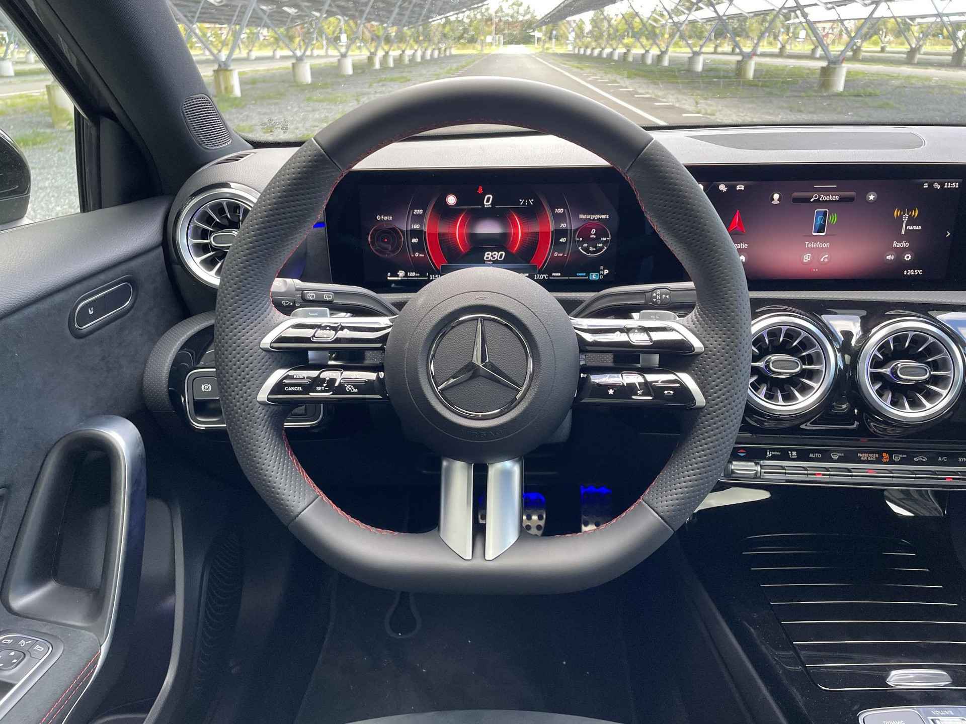 Het gecombineerde vermogen van een elektromotor plus een verbrandingsmotor geeft deze hybride Mercedes-Benz zijn geweldige rijkwaliteiten. Met de kenmerkende AMG-styling toont deze Mercedes-Benz zich van zijn sportieve kant. Dit is een splinternieuwe auto, die nu uit voorraad leverbaar is. In de verwarmbare voorstoelen zitten is elke keer een welkom gevoel. De strakke sportstoelen hebben niet alleen de looks, maar bewijzen ook hun functie als u wat meer vraagt in de uitdagende bochten. Een heerlijk zonnetje, of indrukwekkende wolkenpartijen? Bekijk ze onbelemmerd door het elektrisch bediende glazen panoramadak. De matrix LED-verlichting in de koplampen bestaat uit een raster van lichtpunten met maximale opbrengst. Bij tegenliggers past het systeem precies die punten aan die hinderlijk kunnen zijn. U behoudt maximaal zicht! Natuurlijk behoren 19 inch lichtmetalen velgen, AMG-styling, elektrisch inklapbare buitenspiegels, extra getint glas, in delen neerklapbare achterbank en LED-achterlichten ook tot de uitrusting van deze complete auto. U wordt geïntroduceerd tot de digitale wereld van mobiliteit waarop alles wat u wenst wordt geprojecteerd op het digitale dashboard. Een vergeten muurtje, een verborgen paaltje? Dat gebeurt niet meer, dankzij de achteruitrijcamera. Deze auto gaat met u in gesprek. Hij vertelt u dankzij remote services alles over de status van diverse onderdelen en laat zich desgevraagd ook activeren. Gewoon via uw smartphone. Voor een veilige rit is het belangrijk dat uw handen het stuur vasthouden en uw ogen gefocust blijven op de weg; daarom kunt u het audiosysteem, met DAB-ontvangst en navigatiesysteem met harde schijf bedienen met het stuurwiel of via spraakbediening. De electronic climate control zorgt voor een prettige binnentemperatuur. Ook sportstuur met schakelpaddels, regensensor, cruise control en automatisch dimmende binnenspiegel horen tot de voorzieningen op deze auto. De nieuwste veiligheidssystemen komen in deze Mercedes-Benz A-klasse samen. Het Lane-keeping systeem zorgt voor een automatisch constante positie binnen de rijstrook. Afdwalen is uitgesloten. Kop-staartbotsingen vormen een belangrijk deel van de meest voorkomende aanrijdingen. De forward collision warning van deze auto voorkomt zulke botsingen geheel of reduceert de ernst van de schade aanzienlijk. Vermoeidheidsherkenning is een systeem dat met verschillende sensoren tekenen van vermoeidheid bij de chauffeur waarneemt. Deze krijgt tijdig een waarschuwing, wat ongelukken kan voorkomen. Dankzij veiligheidsvoorzieningen als dodehoekdetectie, autonoom remsysteem en bandenspanningcontrolesysteem, bent u steeds veilig onderweg. We hebben ons best gedaan om de kwaliteit van deze A-klasse aan u uit te leggen, maar er gaat toch niets boven een proefrit. Als u contact met ons opneemt, zetten we de auto voor u klaar. We horen graag van u. Wij zijn Wensink, aangenaam. In onze Wensink Winkels bent u altijd welkom. U kunt bij ons elke dag kiezen uit nieuwe auto's en meer dan 1.500 kwaliteits-occasions tot 8 jaar die stuk voor stuk professioneel zijn geselecteerd, gecheckt en klaargemaakt door onze vakmensen. Echt aangenaam rijden noemen we dat. In onze winkel vindt u alles wat u nodig heeft om zorgeloos te rijden; verzekering, financiering, leasing, onderhoudsabonnementen, laadpaaloplossingen, en meer bij ons vindt u het. En het mooiste? U bepaalt zelf hoe en wanneer u uw auto wil kopen, volledig online en afgeleverd bij u thuis of via één van onze winkels dicht bij u in de buurt. U bepaalt.
