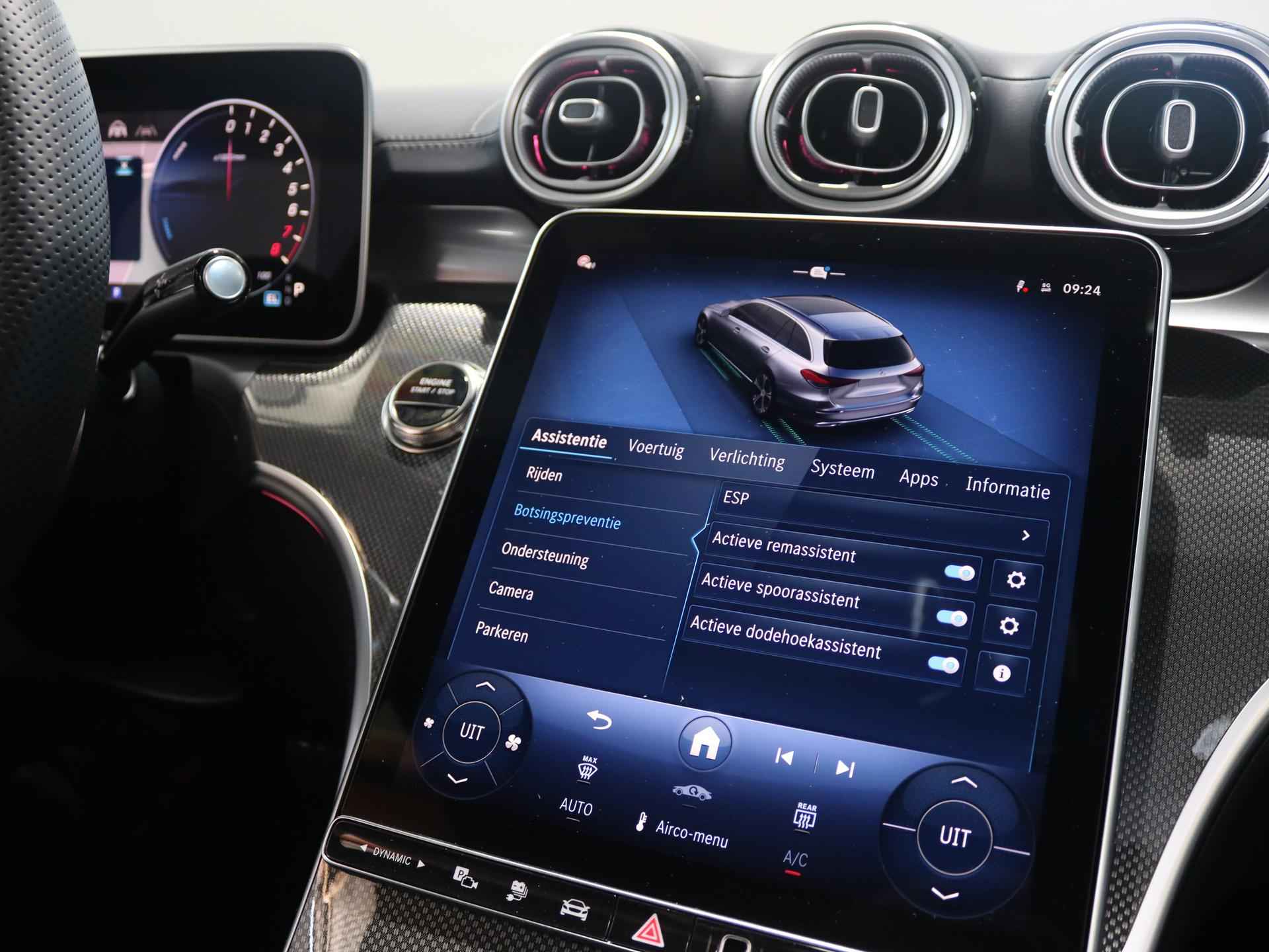 Dit is een demonstratieauto waardoor de actuele kilometerstand kan afwijken. Kiest u voor het Wensink Zekerheidspakket van € 895,- dan krijgt u er o.a. 12 maanden BOVAG garantie bij (bij auto’s t/m 4 jaar). Zo gaat u helemaal zorgeloos op pad. Ziet u zichzelf al een proefrit maken? We ontvangen u graag in onze showroom voor deze occasion. Informeer naar onze voorwaarden en wijzigingen voorbehouden. U rijdt gemakkelijk, comfortabel en zonder zorgen met deze Mercedes-Benz C-klasse Estate. Voor liefhebbers van rijplezier is de AMG-styling een belangrijke reden om voor deze auto te kiezen. Het gaat hier om een nieuwe auto, hij is nu direct leverbaar. Naast de verbrandingsmotor beschikt de auto ook over een elektromotor, die zorgt voor een extra laag brandstofverbruik. U past de stoelen moeiteloos aan, ze zijn elektrisch in te stellen en hebben bovendien een geheugen. Een handige voorziening op deze auto is de elektrische achterklep die u op afstand kunt openen. Onderweg heeft u extra veel te zien dankzij het glazen panoramadak. Met matrix LED-verlichting rijdt u eigenlijk altijd met groot licht, dus maximaal zicht. Toch is verblinden er niet bij, want het systeem regelt de verlichting zo dat tegenliggers er geen last van hebben. Tot de voorzieningen van deze auto behoren 19 inch lichtmetalen velgen, AMG-styling, warmtewerend glas, neerklapbare achterbank, verstelbare lendensteunen en snelheidsafhankelijke stuurbekrachtiging. De functie van deze 360 graden camera is vooral nuttig in smalle straatjes waar het zicht beperkt is. Connected Services zorgen ervoor dat de belangrijkste functies en data van de auto altijd en overal te checken zijn. Gewoon via de app op de smartphone. Elk genre muziek komt tot z'n recht. Het high performance audiosysteem is perfect in te regelen op uw smaak! Natuurlijk is er ook automatische airconditioning aanwezig. Boem is ho? Niet bij deze Mercedes-Benz C-klasse Estate. De piepjes van de parkeersensoren waarschuwen u op tijd voor obstakels. Ook navigatiesysteem met harde schijf, DAB ontvangst, regensensor, sportstuurwiel, automatisch dimmende binnen- en buitenspiegels en centrale deurvergrendeling met afstandsbediening horen tot de voorzieningen op deze auto. Als bestuurder van deze Mercedes-Benz bent u nooit alleen. U wordt onderweg bijgestaan door technologische hulpmiddelen die samen met u de weg in de gaten houden. Als het nodig is, grijpen ze zelfs in, door te remmen of bij te sturen. Belangrijk voor uw veiligheid en die van uw passagiers is de verkeersbord-detectie in deze auto. Indien u onbedoeld de rijstrook lijkt te verlaten, reageert het Lane-keeping systeem meteen en corrigeert. Vermoeidsheidsherkenning neemt tekenen van vermoeidheid waar bij de bestuurder. Het systeem voorkomt dat er daardoor ongelukken gebeuren. Ook helpen het dodehoekdetectie, autonoom remsysteem en bandenspanningcontrolesysteem, uw rit tot een veilige rit te maken. Vanzelfsprekend leveren wij deze nieuwe auto met volledige fabrieksgarantie. We maken graag een afspraak met u om deze C-klasse Estate bij ons te komen bekijken.