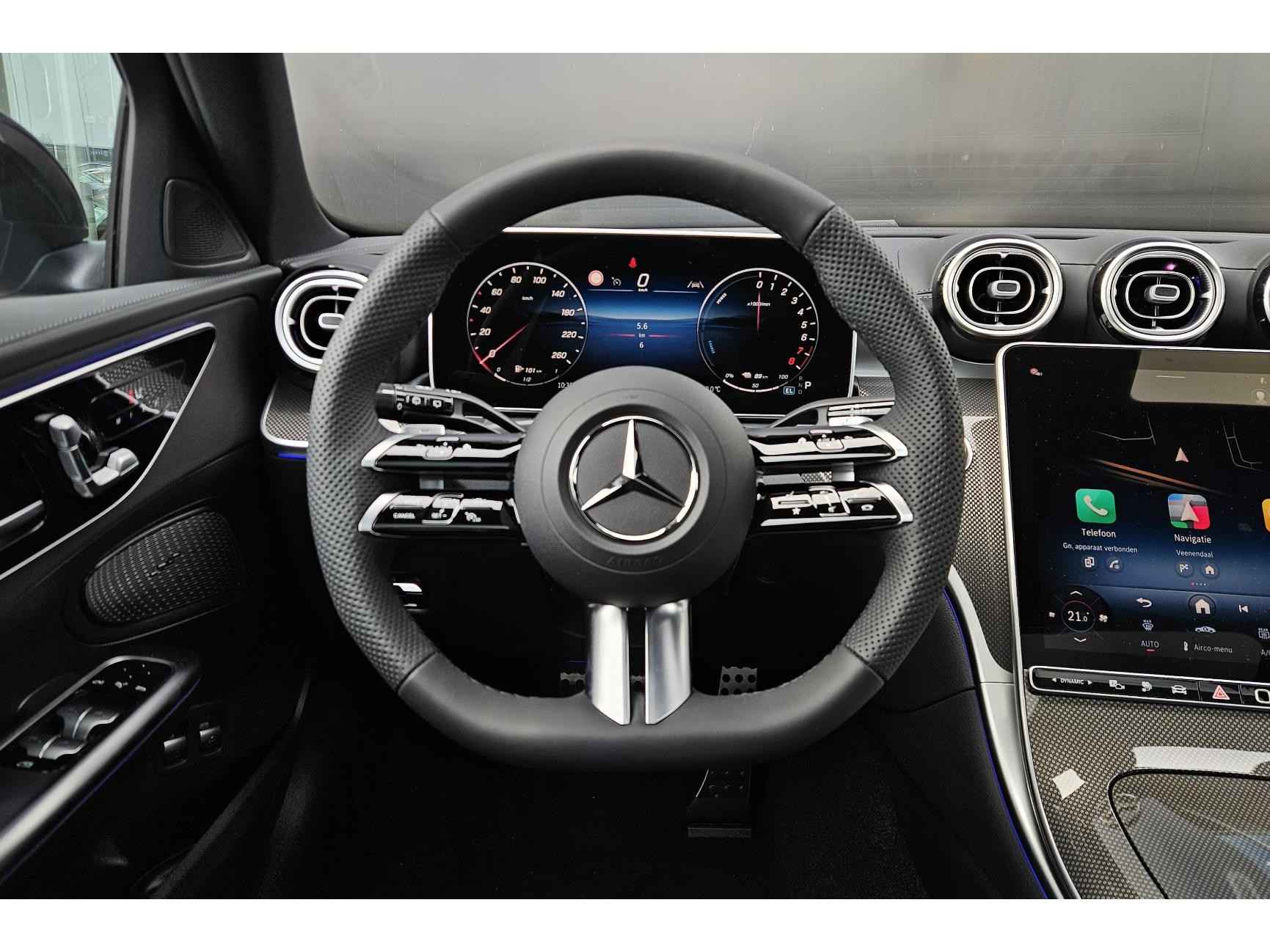 91524 - LET OP, dit voertuig betreft een demonstratieauto en komt drie maanden na de eerste registratiedatum beschikbaar. Bij interesse verzoeken wij u contact op te nemen met één van onze verkoopadviseurs over de beschikbaarheid, locatie en huidige kilometerstand. Met een auto als deze Mercedes-Benz C-Klasse kom jij absoluut goed voor de dag. Deze auto komt uit. Voor de echte liefhebber is de AMG-styling natuurlijk een dikke plus. Hybride auto's zoals deze staan er om bekend dat ze zuinig zijn met brandstof. Dankzij de elektrische stoelbediening is het gemakkelijk om de optimale zitpositie te vinden. De bagageruimte is toegankelijk via een comfortverhogende elektrische achterklep. Onderweg heb je extra veel te zien dankzij het glazen panoramadak. Stramme vingers krijgen 's winters een VIP-behandeling van het verwarmd stuurwiel. Ook 19 inch lichtmetalen velgen, Full LED koplampen, AMG-styling, warmtewerend glas, trailer assistent en neerklapbare achterbank zijn aan boord. Met de 360 graden camera, verzorgd door vier camera's, wordt rijden in drukke steden of het navigeren in nauwe ruimtes een koud kunstje. De auto is voorzien van een trekhaak en is een uitstekende caravantrekker. Ingericht op Connected Services, voor een nog veiligere en comfortabelere rit. Ook praktisch: deze auto is voorzien van een eigen navigatiesysteem met harde schijf. In een auto als deze kun je niet zonder automatische airconditioning, zodat de temperatuur altijd goed is. Ook DAB ontvangst, regensensor, cruise control, automatisch dimmende binnen- en buitenspiegels en centrale deurvergrendeling met afstandsbediening horen tot de voorzieningen op deze auto. Deze Mercedes-Benz biedt je niet alleen comfort en rijplezier, maar ook veiligheid. Actieve veiligheidssystemen houden voor jou de weg in de gaten en reageren op onvoorziene situaties voordat jij dat kunt. Je rijdt ook veiliger omdat deze auto voor jou de verkeersborden langs de weg kan lezen. De belangrijkste borden worden op jouw instrumentarium geprojecteerd, zodat je ze niet kunt missen. Het Lane-keeping systeem zorgt voor een automatisch constante positie binnen de rijstrook. Afdwalen is uitgesloten. Bij concentratieverlies en toenemende vermoeidheid van de bestuurder, geeft de auto een sterk signaal om je weer bij de les te houden. Hierdoor kunnen veel ongelukken voorkomen worden. Bovenop deze veiligheidsfeatures heeft deze Mercedes-Benz bovendien dodehoekdetectie, autonoom remsysteem en bandenspanningcontrolesysteem. Nieuwsgierig geworden? Kom deze auto dan snel bij ons bekijken. Gaat jouw autohart sneller kloppen van deze auto? Plan vrijblijvend een proefrit in om de auto in het echt te ervaren. We staan graag voor je klaar bij vragen of voor advies. Meer aandacht. Meer service. Bij Hedin Automotive vind je een ruime voorraad van zo’n 5.000 nieuwe en tweedehands auto’s. Voor jezelf of je bedrijf. Om te kopen of te leasen. Wij onderhouden je auto in onze werkplaatsen en herstellen een schade als dat nodig is. En natuurlijk helpen we je bij de financiering of verzekering. Welkom bij Hedin Automotive. Autohart van Nederland.