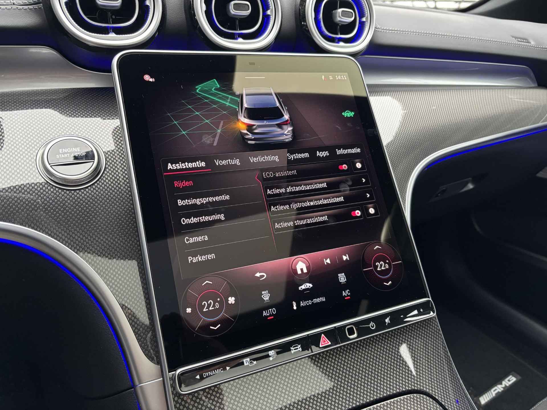Het is een auto die er nog jaren tegenaan kan, deze Mercedes-Benz C-klasse die 16025 kilometer op de teller heeft staan. AMG-styling vertegenwoordigt de overtreffende trap in smaakvolle sportiviteit. Hybride rijden is de ideale middenweg. Deze Mercedes-Benz C-klasse biedt die mogelijkheid. Goedkoper rijden, schoner rijden en zo nodig over op benzine. De ideale combi! Dankzij de elektrische stoelbediening is het gemakkelijk om de optimale zitpositie te vinden. Licht, luxe en gemak komen samen in de vorm van het elektrische bediende glazen panoramadak. Met een druk op de knop gaat de elektrische achterklep open. Ook is de auto voorzien van: 18 inch lichtmetalen velgen, LED-koplampen, AMG-styling, warmtewerend glas, neerklapbare achterbank en verstelbare lendensteunen. Slim, efficiënt, veilig en goed geïnformeerd rijden? Het digitale dashboard vertelt u alles wat u wilt weten. Het gebruik van de 360 graden camera op deze auto vergemakkelijkt het parkeren aanzienlijk, vooral in krappe ruimtes. Adaptive cruise control is veilig en comfortabel. De snelheidsregelaar houdt automatisch afstand tot het voertuig dat voor u rijdt. De file assistent verzacht het fileleed door automatisch veilig afstand te houden tot de voorligger en zo nodig zelfs te stoppen als de rij tot stilstand komt. Gemak dient de mens. Dankzij de spraaksturing bedient u de belangrijkste functie met uw stem. Deze Mercedes-Benz is voorzien van connected drive services, navigatiesysteem met harde schijf, automatische airconditioning, DAB ontvangst, regensensor en sportstuurwiel. Tijdens de rit wordt u als bestuurder ondersteund door verschillende systemen die de weg en uw omgeving in de gaten houden. Bij de veiligheidssystemen van deze auto hoort ook de verkeersbord-detectie. Die leest tijdens het rijden als het ware met u mee en attendeert u op de significante verkeersborden langs en boven de weg. Een camera houdt de juiste koers binnen de rijstrook in de gaten en het Lane-keeping systeem corrigeert bij afwijkingen. Hoe goed u ook oplet in het verkeer, de dode hoek blijft een risico. Gelukkig is deze Mercedes-Benz C-klasse voorzien van actieve dodehoekdetectie. De auto is ook uitgerust met forward collision warning system, brake assist en bandenspanningcontrolesysteem. Meer weten? Onze verkoper maakt graag een afspraak om u alles te laten zien!