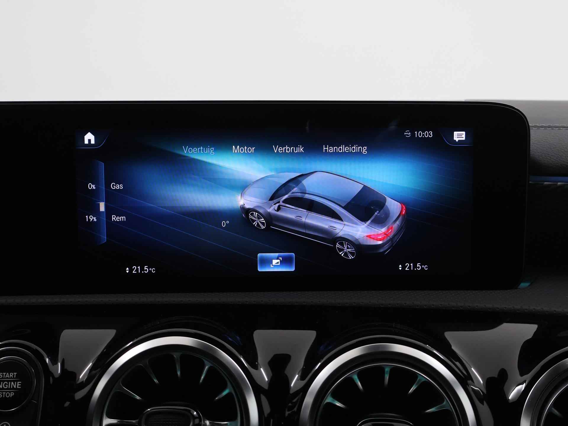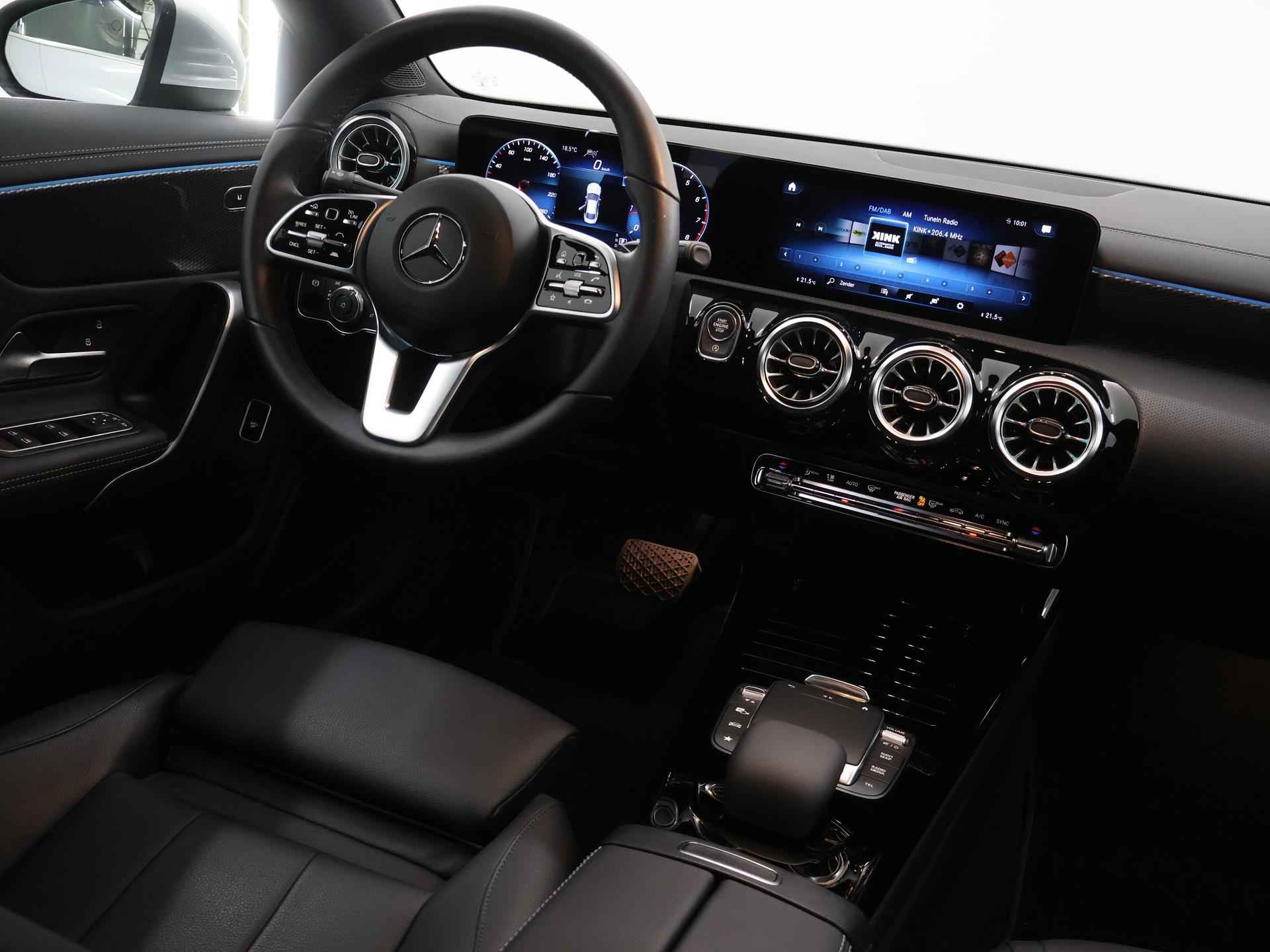 Het is een auto die er nog jaren tegenaan kan, deze Mercedes-Benz CLA-klasse die 18251 kilometer op de teller heeft staan. De aandrijving komt voor rekening van een benzinemotor en een automatische transmissie. Ga samen met uw bijrijder lekker zitten in de verwarmbare voorstoelen. Onderweg zorgen de comfortstoelen voor een ontspannen rit. Met een druk op de knop gaat de elektrische achterklep open. In deze auto profiteert u onder andere ook van: 18 inch lichtmetalen velgen, LED koplampen, donker getint glas achter, in delen neerklapbare achterbank, LED-achterlichten en verstelbare lendensteunen. Het digitale dashboard stelt u in staat uw cockpitinterface te personaliseren. De hoogwaardige achteruitrijcamera en het display met hoge resolutie zorgen dat helemaal niets u meer ontgaat van wat er achter de auto gebeurt. Adaptive cruise control is veilig en comfortabel. De snelheidsregelaar houdt automatisch afstand tot het voertuig dat voor u rijdt. Met de ingebouwde spraakbediening kunt u de belangrijkste voertuigsystemen bedienen met stemcommando's. In het zeldzame geval van een storing weet u nog eerder dan de monteur wat er mankeert. Uw smartphone met remote services geeft direct inzicht. Ook is de Mercedes-Benz uitgerust met: navigatiesysteem met harde schijf, electronic climate control, sportstuur met schakelpaddels, DAB ontvangst, regensensor en keyless entry. Als bestuurder van deze Mercedes-Benz bent u nooit alleen. U wordt onderweg bijgestaan door technologische hulpmiddelen die samen met u de weg in de gaten houden. Als het nodig is, grijpen ze zelfs in, door te remmen of bij te sturen. Het Lane-keeping systeem doet precies wat nodig is: waarschuwen en corrigeren bij onbedoelde overschrijding van de rijstrooklijnen. Veel aanrijdingen bestaan uit kop-staartbotsingen. De forward collision warning reduceert dat risico aanzienlijk. Bij concentratieverlies en toenemende vermoeidheid van de bestuurder, geeft de auto een sterk signaal om u weer bij de les te houden. Hierdoor kunnen veel ongelukken voorkomen worden. Dankzij veiligheidsvoorzieningen als autonoom remsysteem en bandenspanningcontrolesysteem, bent u steeds veilig onderweg. We kunnen ons voorstellen dat een proefrit wilt maken met deze auto. Belt u ons snel?