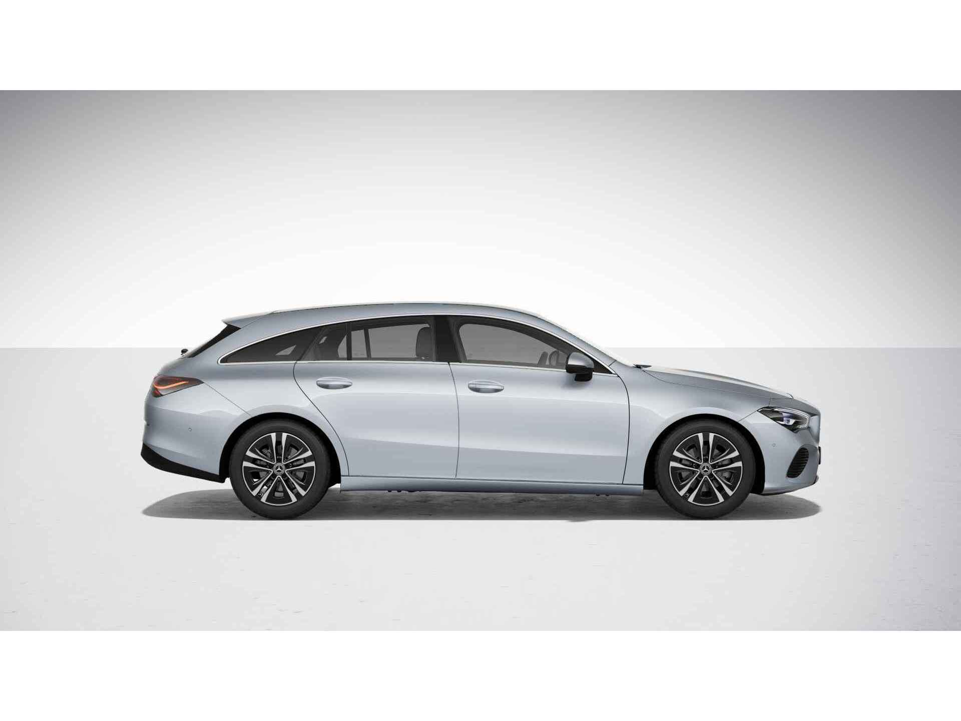 Modern design en bijzondere techniek bepalen de kwaliteiten van de hybride Mercedes-Benz CLA-klasse Shooting Brake. Het is een nieuwe auto, hij is nu uit voorraad leverbaar. Dankzij zijn verbrandingsmotor en de elektromotor is het brandstofverbruik van deze auto laag in zijn klasse. Doe maar luxe! Neem plaats in de verwarmbare voorstoelen en voel de weldaad in koude dagen. Lekker zitten doet u in de comfortstoelen van deze auto. Met een druk op de knop gaat de elektrische achterklep open. Bij de rijke uitrusting horen ook 17 inch lichtmetalen velgen, LED koplampen, LED-achterlichten, verstelbare lendensteunen en snelheidsafhankelijke stuurbekrachtiging. Met de achteruitrijcamera ziet u precies wat er achter de auto gebeurt. Had u de auto nou wel afgesloten? Met Connected Services checkt u het overal en altijd. Een goede veiligheidsvoorziening is de spraakbediening en stuurbediening voor belangrijke functies. De auto is natuurlijk voorzien van een navigatiesysteem met harde schijf en het audiosysteem biedt glasheldere geluidskwaliteit dankzij DAB-ontvangst. De automatische airconditioning zorgt voor een behaaglijk klimaat in de auto. De automatisch inschakelbare verlichting en regensensor zorgen dat onderweg automatisch de verlichting en de ruitenwissers worden ingeschakeld. Daarmee nemen ze u veel werk uit handen. En dan is deze auto ook nog eens voorzien van sportstuur met schakelpaddels, cruise control, automatisch dimmende buitenspiegels en centrale deurvergrendeling met afstandsbediening. De automatische veiligheidssystemen in deze Mercedes-Benz fungeren als een extra paar ogen. En dat niet alleen, ze kunnen ook actief ingrijpen, om zo u en uw passagiers te beschermen. Een camera houdt de juiste koers binnen de rijstrook in de gaten en het Lane-keeping systeem corrigeert bij afwijkingen. Forward collision warning waarschuwt voor een kop-staart botsing. Op lange ritten voorkomt de vermoeidheidsassistent dat uw concentratie afneemt. Verder is deze auto uitgerust met autonoom remsysteem en bandenspanningcontrolesysteem. Wordt dit uw nieuwe auto? We verwelkomen u graag om u deze CLA-klasse Shooting Brake te laten zien, en dan leggen we u ook uit welke financieringsvormen we erbij kunnen aanbieden. Deze nieuwe Mercedes-Benz is direct uit voorraad leverbaar. Alle acties, inruilpremies en bijkomende kosten zijn reeds verwerkt in deze actieprijs! Informeer naar onze voorwaarden, wijzigingen voorbehouden.