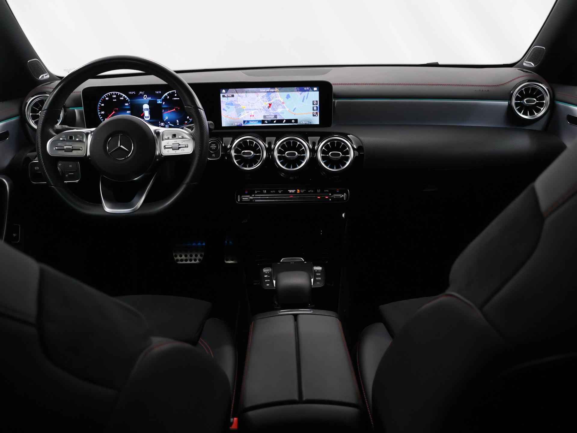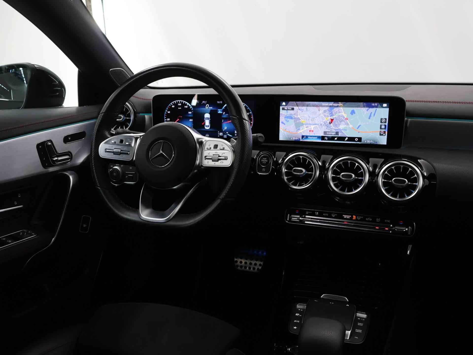 Gebouwd voor liefhebbers van autorijden, deze Mercedes-Benz CLA-klasse levert sportieve prestaties en onafgebroken rijplezier. De AMG-styling van deze auto is zowel smaakmakend als spraakmakend. Hij heeft een benzinemotor en een automatische transmissie. De ruime lichtinval door het elektrisch bediende glazen panorama dak zorgt voor een heerlijk ruim gevoel. Met één klik te openen voor frisse lucht en een mild windje in de auto. Dat is gemak en plezier! Overigens is het happy-klik gevoel ook aanwezig bij de elektrisch bedienbare achterklep. Neem plaats op de comfortabele stoelen. Dankzij de elektrische bediening en het geheugen is het eenvoudig om hierin de beste zitpositie te vinden. De koplampen zijn voorzien van de allernieuwste lichttechnologie: matrix LED-verlichting. Tot de uitrusting van deze Mercedes-Benz behoren ook 18 inch lichtmetalen velgen, AMG-styling, sportonderstel, adaptief dempingsysteem, donker getint glas achter en in delen neerklapbare achterbank. Het digitale dashboard in deze auto maakt personalisatie van uw cockpitinterface mogelijk. Met de 360 graden camera op deze auto wordt parkeren in smalle parkeerplekken een makkie dankzij het optimale zicht dat het apparaat levert. Adaptive cruise control houdt de ingestelde snelheid vast en houdt automatisch afstand tot uw voorligger. Fijn, zo'n trekhaak. Maar niet constant nodig. Daarom heeft deze Mercedes-Benz CLA-klasse een elektrisch inklapbare trekhaak. Oliepeil, bandenspanning, sloten en andere functies zijn via een speciale app overal te checken dankzij Connected Services. Deze auto is voorzien van dashboard met spraakbediening, premium audiosysteem, navigatiesysteem met harde schijf, electronic climate control, sportstuur met schakelpaddels en regensensor. Zoals u mag verwachten van deze Mercedes-Benz CLA-klasse is hij uitgerust met een reeks aan actieve veiligheidssystemen. Onderweg zorgt verkeersborddetectie ervoor dat u geen waarschuwingsbord mist. Het Lane-keeping systeem zorgt voor een automatisch constante positie binnen de rijstrook. Afdwalen is uitgesloten. De actieve dodehoekdetectie minimaliseert het gevaar van ongelukken wanneer u afslaat of inhaalt. U bent mede dankzij forward collision warning system, frontale botsbescherming en bandenspanningcontrolesysteem steeds veilig onderweg. Als dit de auto is die u zoekt, wacht dan niet langer en plan direct online een proefrit. Wij zijn Wensink, aangenaam. In onze Wensink Winkels bent u altijd welkom. U kunt bij ons elke dag kiezen uit nieuwe auto's en meer dan 1.500 kwaliteits-occasions tot 8 jaar die stuk voor stuk professioneel zijn geselecteerd, gecheckt en klaargemaakt door onze vakmensen. Echt aangenaam rijden noemen we dat. In onze winkel vindt u alles wat u nodig heeft om zorgeloos te rijden; verzekering, financiering, leasing, onderhoudsabonnementen, laadpaaloplossingen, en meer bij ons vindt u het. En het mooiste? U bepaalt zelf hoe en wanneer u uw auto wil kopen, volledig online en afgeleverd bij u thuis of via één van onze winkels dicht bij u in de buurt. U bepaalt.