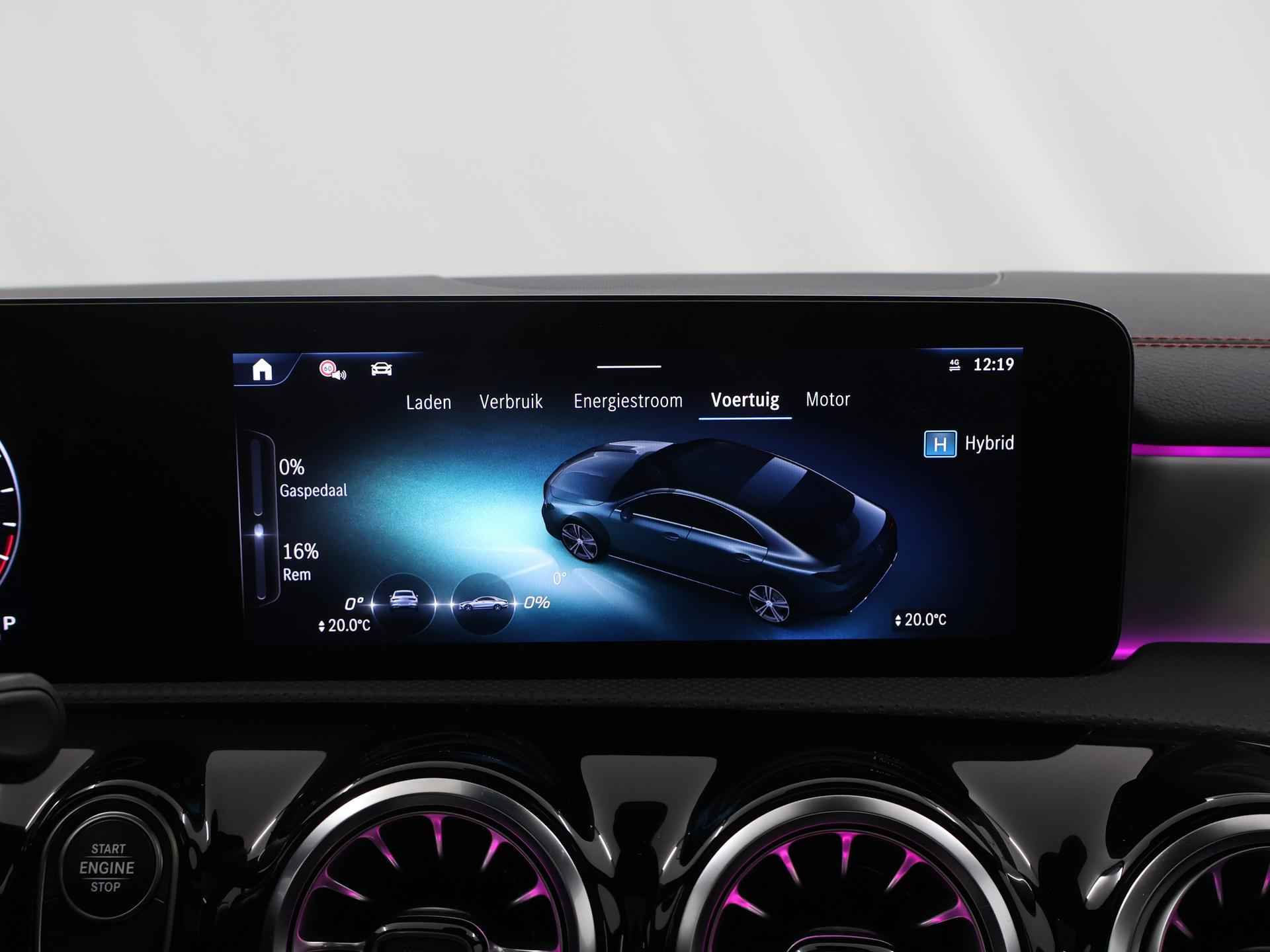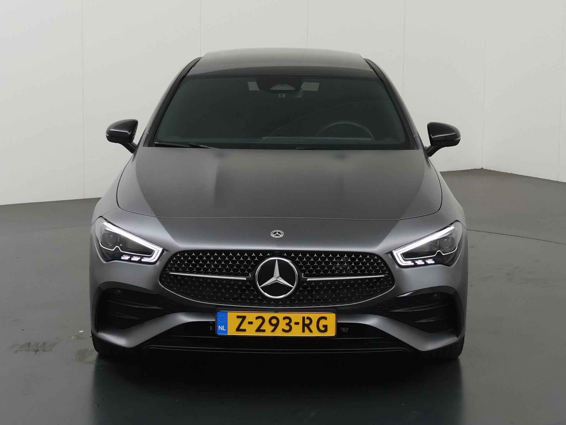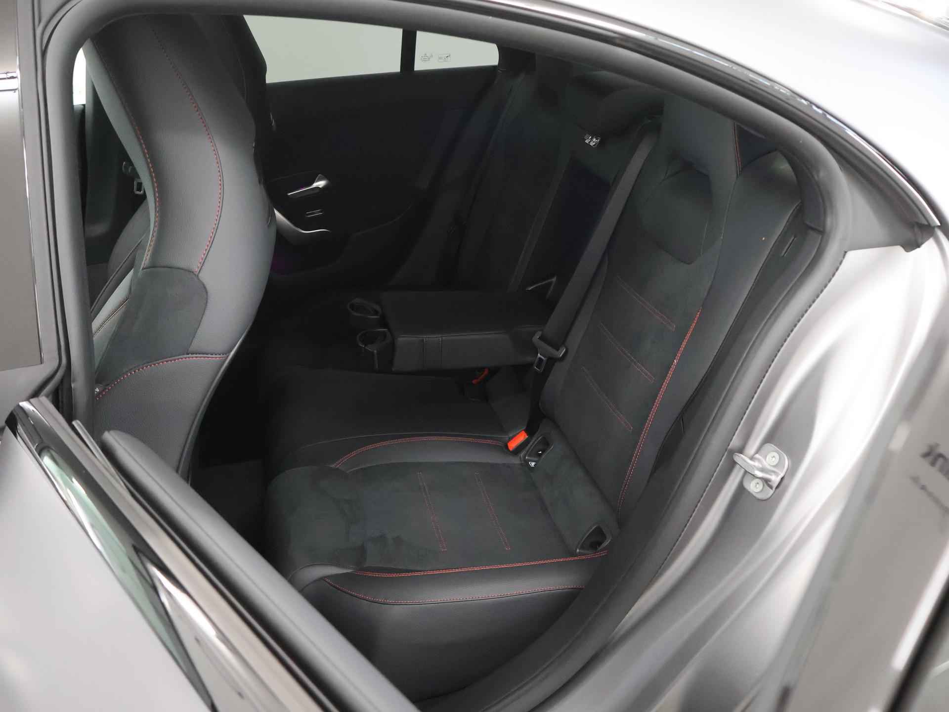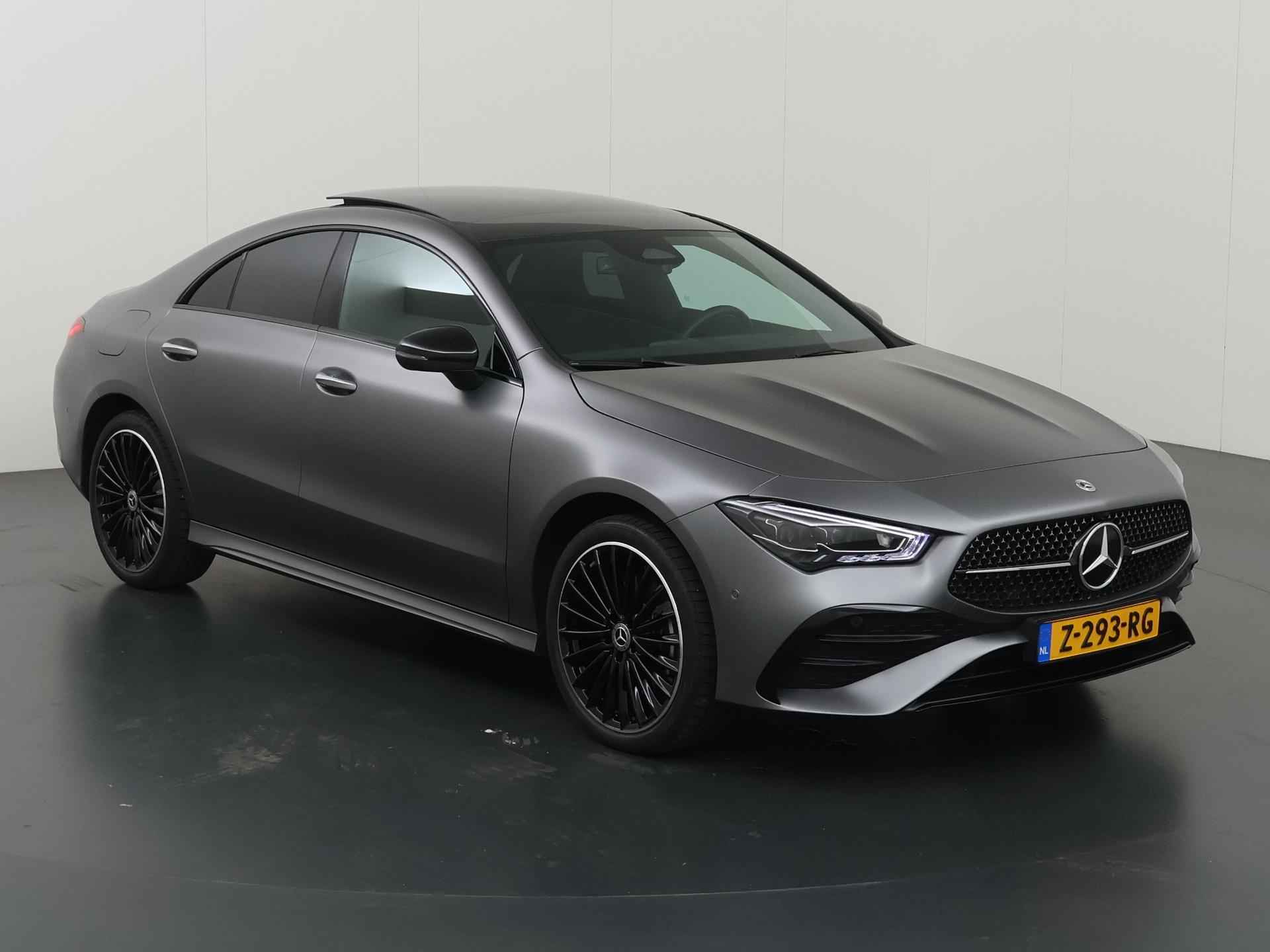 Stoer staal en superieure rijprestaties: dan weet u dat u met een Duits topmerk te maken heeft. De AMG-styling geeft dit model een elegante en opvallende uitstraling. Rijden met deze Mercedes-Benz CLA-klasse is energiezuinig, want de hybride motor combineert brandstof met elektriciteit. Minder vaak langs de pomp, dus dat scheelt! In weer een wind een cabrio-gevoel? Daarvoor zorgt het elektrisch bediende glazen panorama dak. En het moeiteloos in- en uitladen is te danken aan de elektrisch bedienbare achterklep. De verwarmbare voorstoelen zijn een heerlijke extra optie, waarmee u uzelf en uw bijrijder een groot plezier doet. Chauffeur en bijrijder zitten stabiel in de scherpe bochten door de sportstoelen. Het verwarmbare stuurwiel is een teken van ultieme luxe. Deze voorziening is een topklasse auto waardig. Voorzien van matrix LED-verlichting. De auto dimt precies dat deel van de lichtstraal waar de voor- of tegenliggers in rijden. De overige segmenten blijven aan en verlichten de weg. Bij de uitrusting van deze Mercedes-Benz horen onder meer 19 inch lichtmetalen velgen, AMG-styling, donker getint glas achter, in delen neerklapbare achterbank, LED-achterlichten en verstelbare lendensteunen. Wat ook opvalt, is de strakke en overzichtelijke informatie die het digitale dashboard levert. Ongelukken of parkeerschade? Dat gebeurt u niet meer, met de achteruitrijcamera. Communiceren met uw auto? Dat gaat via remote services. Met uw smartphone maakt u waar dan ook contact om allerlei functies te checken of te activeren. De luidsprekers van het high performance audiosysteem omringen u met een uitgebalanceerd geluid. Geef uw smartphone weer 100% met de draadloze telefoonlader. De uitrusting van deze auto is met dashboard met spraakbediening, navigatiesysteem met harde schijf, electronic climate control, DAB ontvangst, regensensor en cruise control behoorlijk compleet. Het rijden met deze Mercedes-Benz wordt nog meer ontspannen dankzij de innovatieve technieken die onderweg over uw veiligheid waken. Het Lane-keeping systeem zorgt dat u mooi binnen de lijntjes blijft. Ongemerkt buiten de rijstrook komen is er niet meer bij. Forward collision warning helpt u om kop-staart aanrijdingen te voorkomen. Met de vermoeidheidsassistent bent u ook op lange ritten veilig op pad. Het systeem geeft een waarschuwing zodra het tijd is voor een pauze. In deze Mercedes-Benz vinden we verder een dodehoekdetectie, autonoom remsysteem en bandenspanningcontrolesysteem. Maak nu een afspraak voor een proefrit!