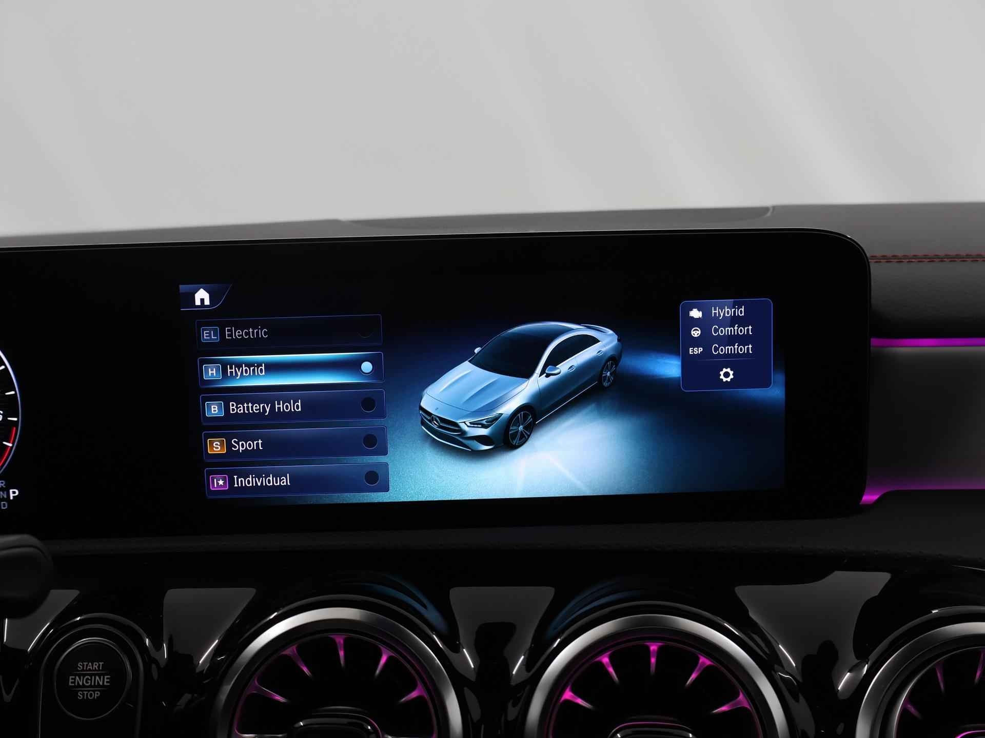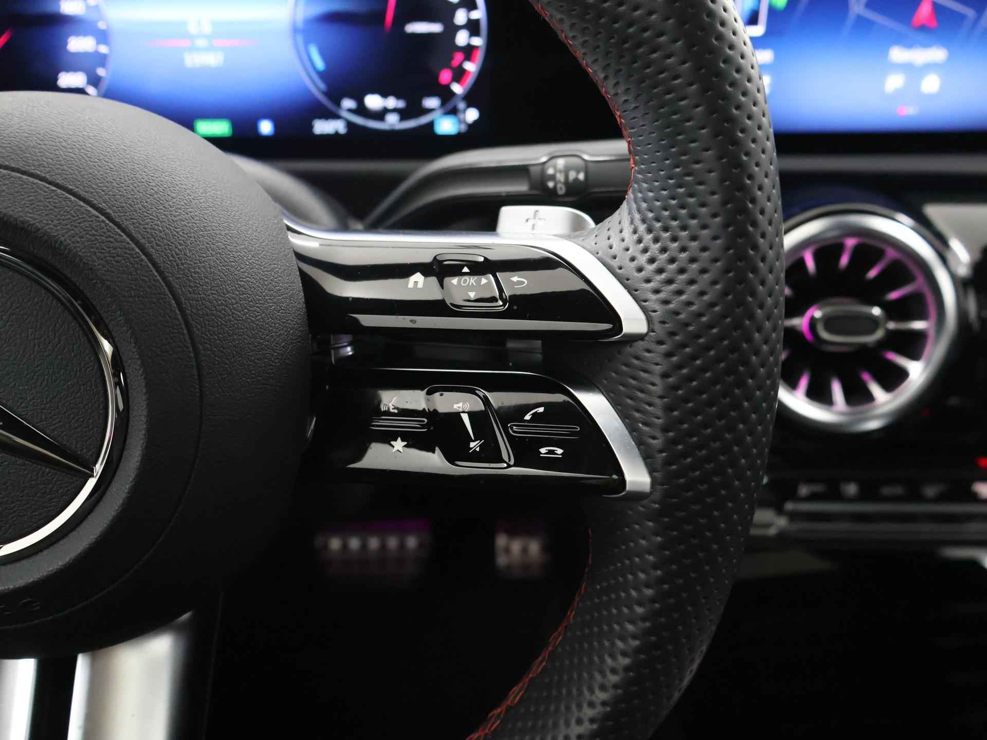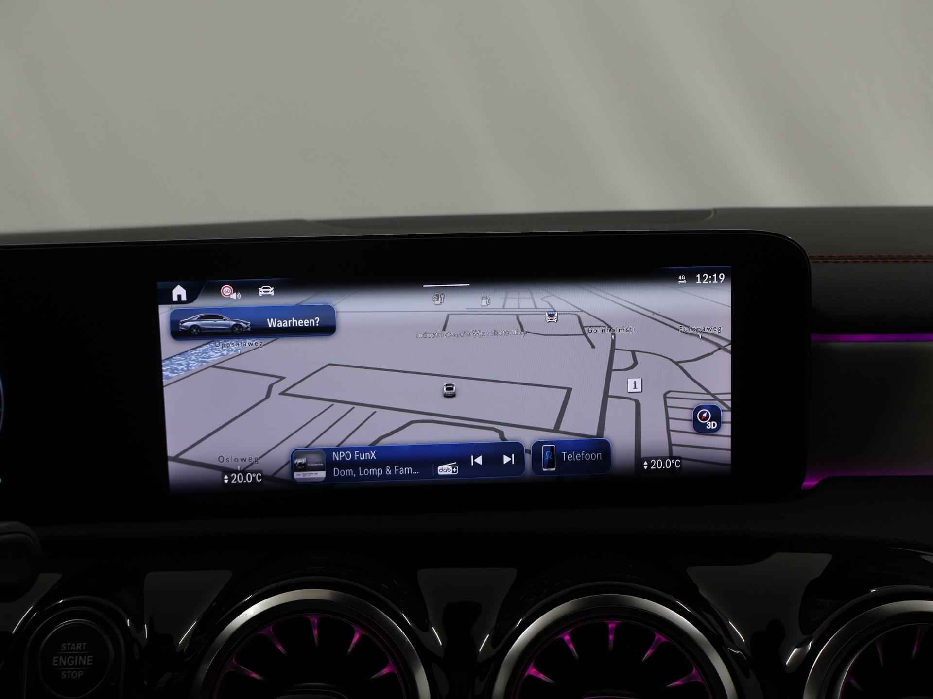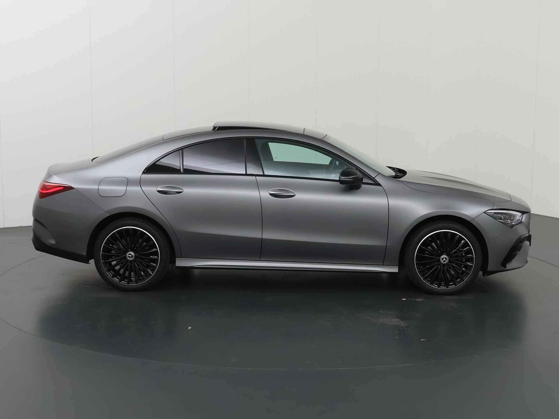 Stoer staal en superieure rijprestaties: dan weet u dat u met een Duits topmerk te maken heeft. De AMG-styling geeft dit model een elegante en opvallende uitstraling. Rijden met deze Mercedes-Benz CLA-klasse is energiezuinig, want de hybride motor combineert brandstof met elektriciteit. Minder vaak langs de pomp, dus dat scheelt! In weer een wind een cabrio-gevoel? Daarvoor zorgt het elektrisch bediende glazen panorama dak. En het moeiteloos in- en uitladen is te danken aan de elektrisch bedienbare achterklep. De verwarmbare voorstoelen zijn een heerlijke extra optie, waarmee u uzelf en uw bijrijder een groot plezier doet. Chauffeur en bijrijder zitten stabiel in de scherpe bochten door de sportstoelen. Het verwarmbare stuurwiel is een teken van ultieme luxe. Deze voorziening is een topklasse auto waardig. Voorzien van matrix LED-verlichting. De auto dimt precies dat deel van de lichtstraal waar de voor- of tegenliggers in rijden. De overige segmenten blijven aan en verlichten de weg. Bij de uitrusting van deze Mercedes-Benz horen onder meer 19 inch lichtmetalen velgen, AMG-styling, donker getint glas achter, in delen neerklapbare achterbank, LED-achterlichten en verstelbare lendensteunen. Wat ook opvalt, is de strakke en overzichtelijke informatie die het digitale dashboard levert. Ongelukken of parkeerschade? Dat gebeurt u niet meer, met de achteruitrijcamera. Communiceren met uw auto? Dat gaat via remote services. Met uw smartphone maakt u waar dan ook contact om allerlei functies te checken of te activeren. De luidsprekers van het high performance audiosysteem omringen u met een uitgebalanceerd geluid. Geef uw smartphone weer 100% met de draadloze telefoonlader. De uitrusting van deze auto is met dashboard met spraakbediening, navigatiesysteem met harde schijf, electronic climate control, DAB ontvangst, regensensor en cruise control behoorlijk compleet. Het rijden met deze Mercedes-Benz wordt nog meer ontspannen dankzij de innovatieve technieken die onderweg over uw veiligheid waken. Het Lane-keeping systeem zorgt dat u mooi binnen de lijntjes blijft. Ongemerkt buiten de rijstrook komen is er niet meer bij. Forward collision warning helpt u om kop-staart aanrijdingen te voorkomen. Met de vermoeidheidsassistent bent u ook op lange ritten veilig op pad. Het systeem geeft een waarschuwing zodra het tijd is voor een pauze. In deze Mercedes-Benz vinden we verder een dodehoekdetectie, autonoom remsysteem en bandenspanningcontrolesysteem. Maak nu een afspraak voor een proefrit!