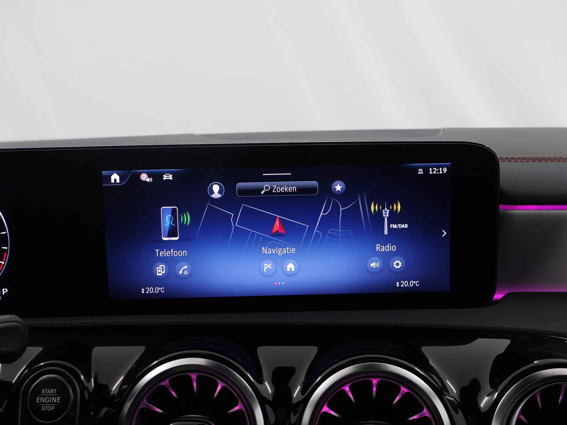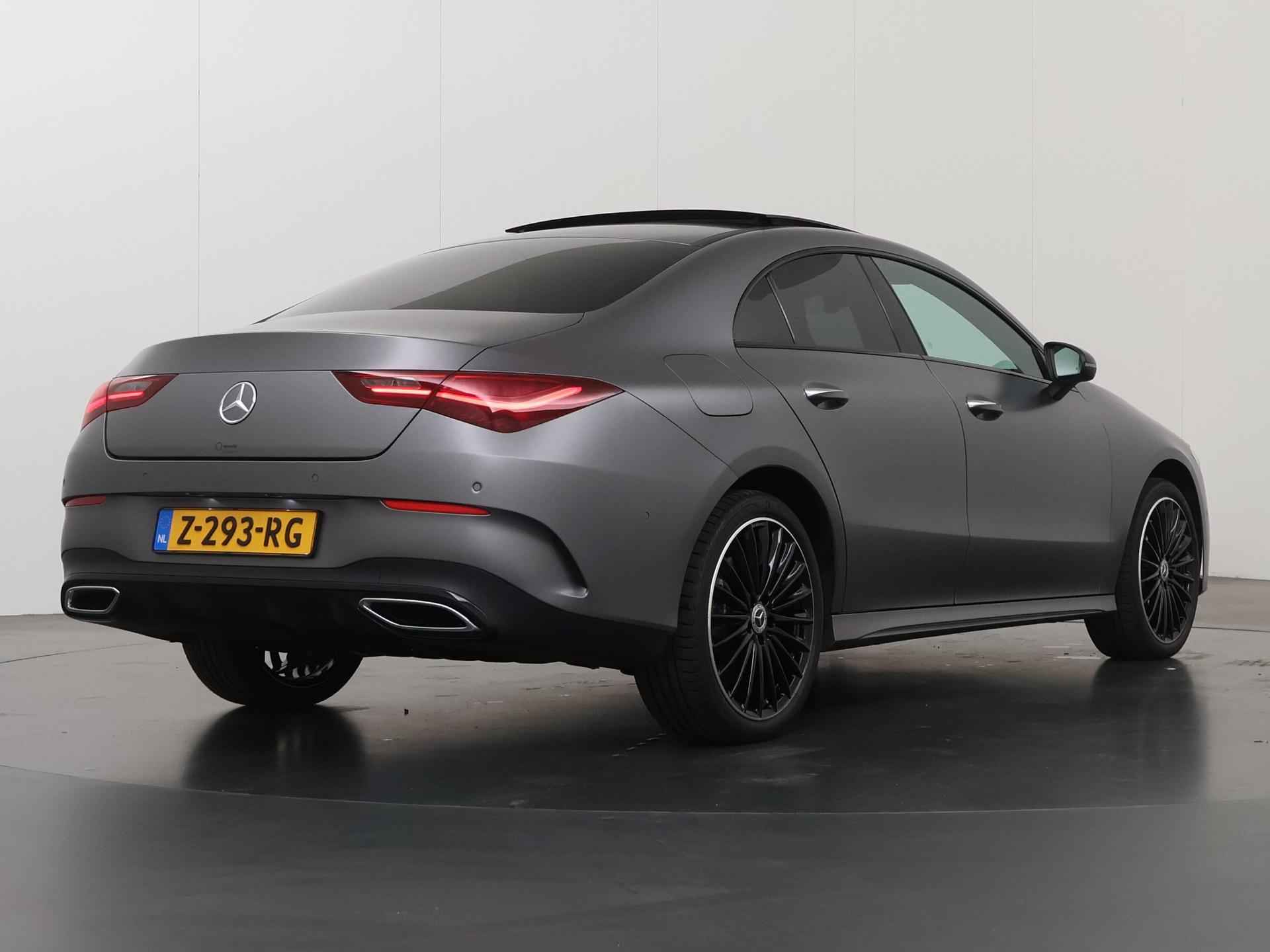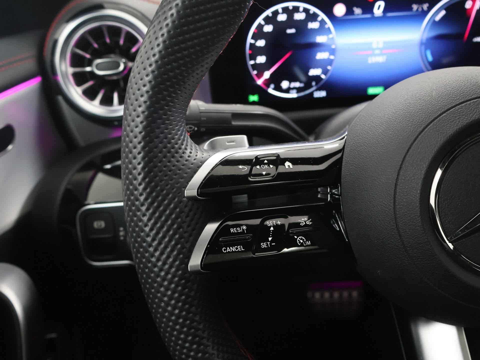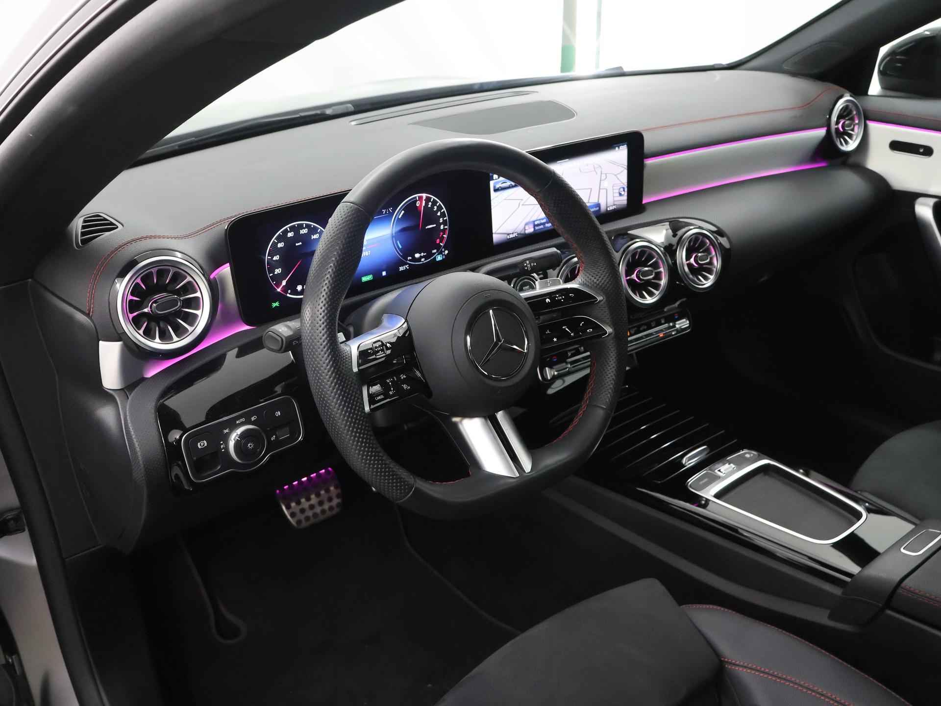 Stoer staal en superieure rijprestaties: dan weet u dat u met een Duits topmerk te maken heeft. De AMG-styling geeft dit model een elegante en opvallende uitstraling. Rijden met deze Mercedes-Benz CLA-klasse is energiezuinig, want de hybride motor combineert brandstof met elektriciteit. Minder vaak langs de pomp, dus dat scheelt! In weer een wind een cabrio-gevoel? Daarvoor zorgt het elektrisch bediende glazen panorama dak. En het moeiteloos in- en uitladen is te danken aan de elektrisch bedienbare achterklep. De verwarmbare voorstoelen zijn een heerlijke extra optie, waarmee u uzelf en uw bijrijder een groot plezier doet. Chauffeur en bijrijder zitten stabiel in de scherpe bochten door de sportstoelen. Het verwarmbare stuurwiel is een teken van ultieme luxe. Deze voorziening is een topklasse auto waardig. Voorzien van matrix LED-verlichting. De auto dimt precies dat deel van de lichtstraal waar de voor- of tegenliggers in rijden. De overige segmenten blijven aan en verlichten de weg. Bij de uitrusting van deze Mercedes-Benz horen onder meer 19 inch lichtmetalen velgen, AMG-styling, donker getint glas achter, in delen neerklapbare achterbank, LED-achterlichten en verstelbare lendensteunen. Wat ook opvalt, is de strakke en overzichtelijke informatie die het digitale dashboard levert. Ongelukken of parkeerschade? Dat gebeurt u niet meer, met de achteruitrijcamera. Communiceren met uw auto? Dat gaat via remote services. Met uw smartphone maakt u waar dan ook contact om allerlei functies te checken of te activeren. De luidsprekers van het high performance audiosysteem omringen u met een uitgebalanceerd geluid. Geef uw smartphone weer 100% met de draadloze telefoonlader. De uitrusting van deze auto is met dashboard met spraakbediening, navigatiesysteem met harde schijf, electronic climate control, DAB ontvangst, regensensor en cruise control behoorlijk compleet. Het rijden met deze Mercedes-Benz wordt nog meer ontspannen dankzij de innovatieve technieken die onderweg over uw veiligheid waken. Het Lane-keeping systeem zorgt dat u mooi binnen de lijntjes blijft. Ongemerkt buiten de rijstrook komen is er niet meer bij. Forward collision warning helpt u om kop-staart aanrijdingen te voorkomen. Met de vermoeidheidsassistent bent u ook op lange ritten veilig op pad. Het systeem geeft een waarschuwing zodra het tijd is voor een pauze. In deze Mercedes-Benz vinden we verder een dodehoekdetectie, autonoom remsysteem en bandenspanningcontrolesysteem. Maak nu een afspraak voor een proefrit!