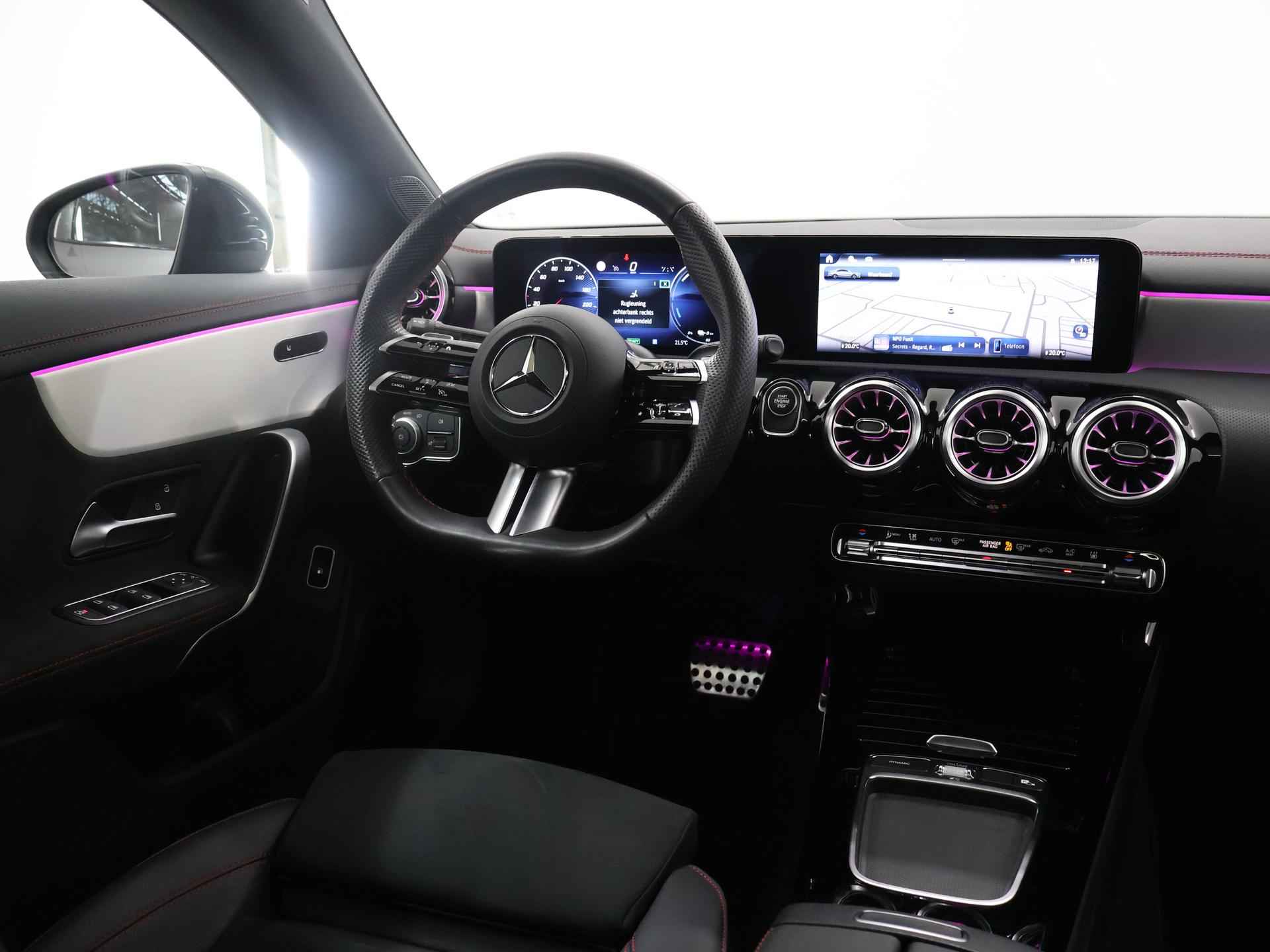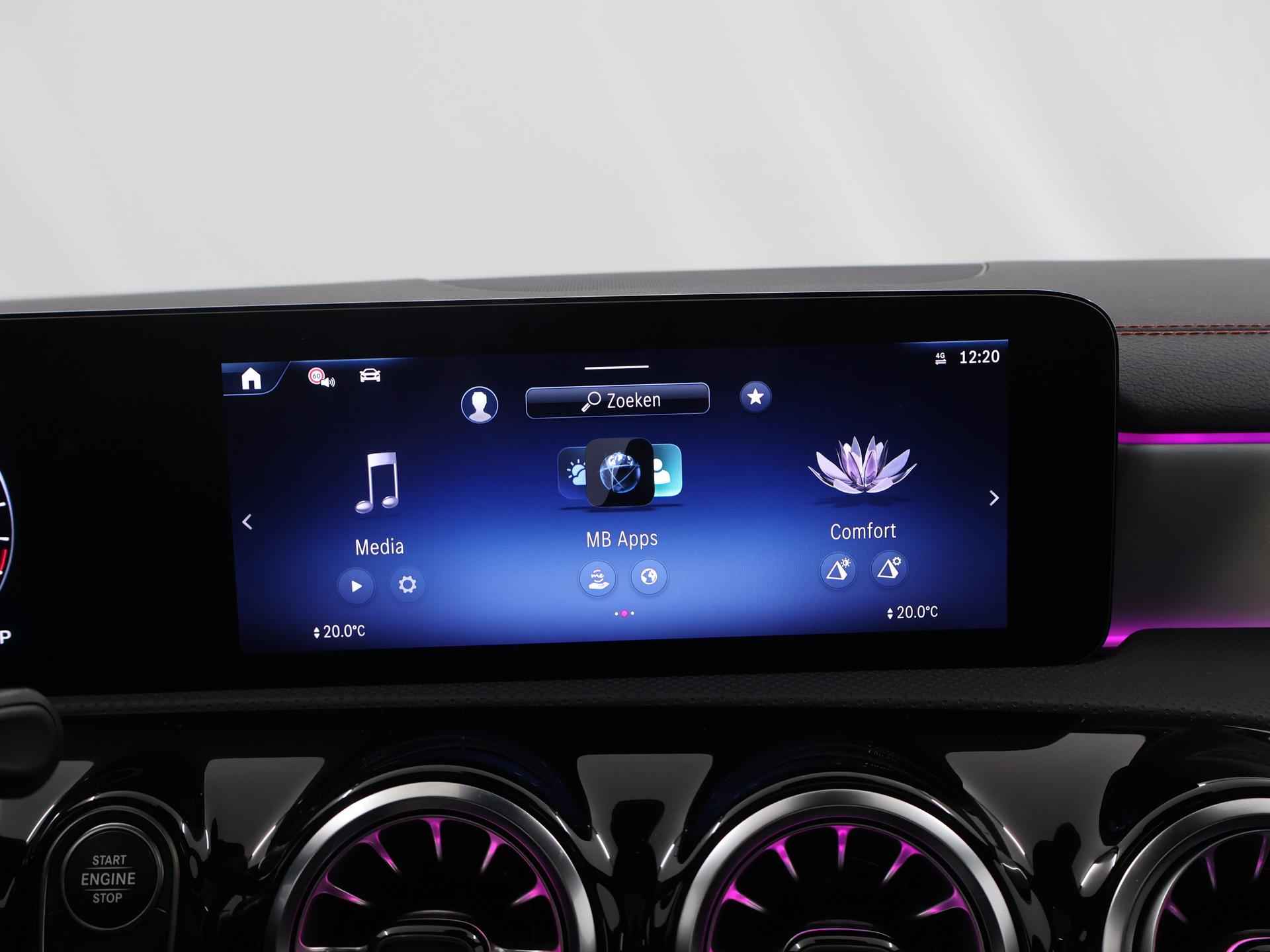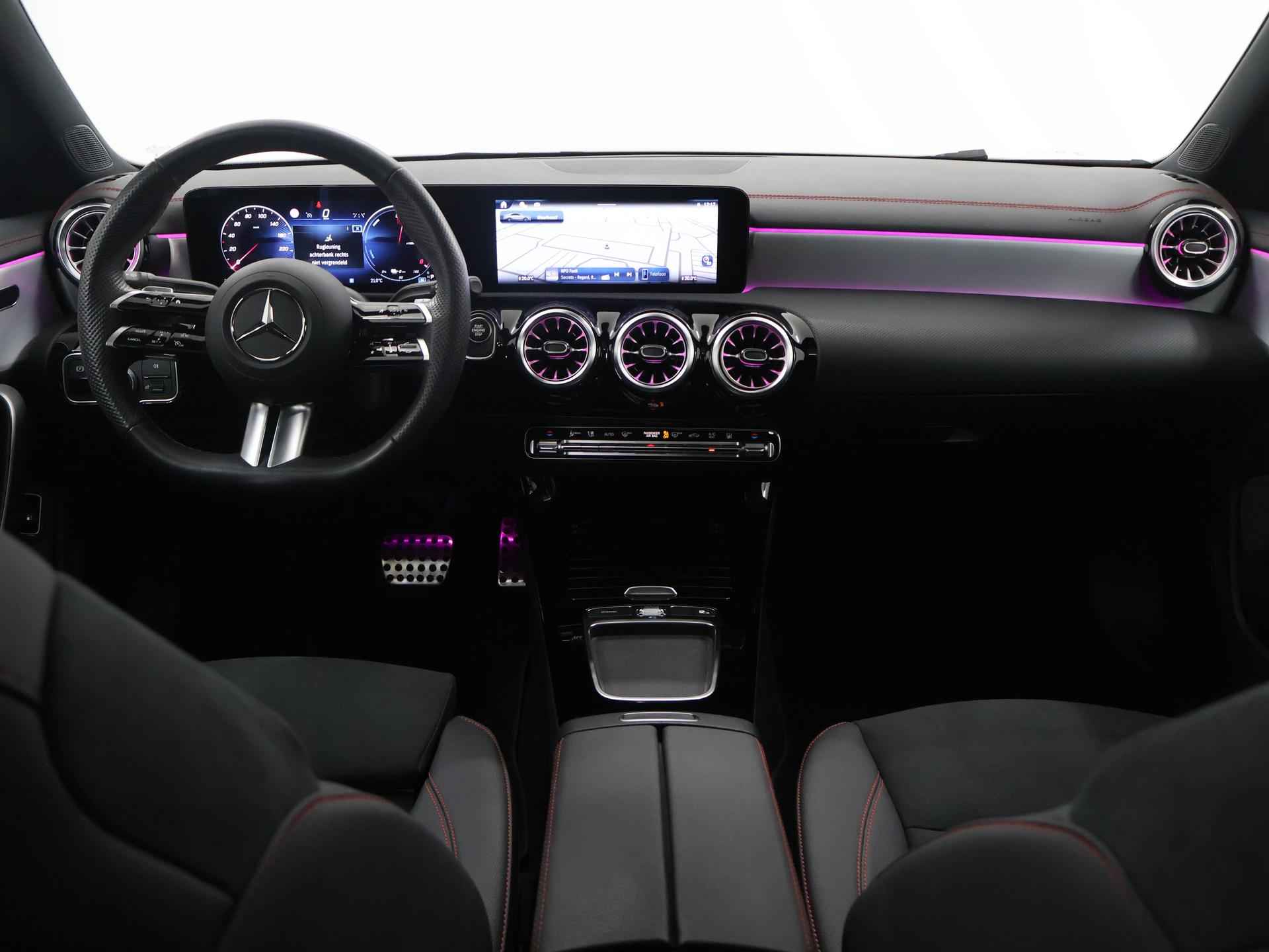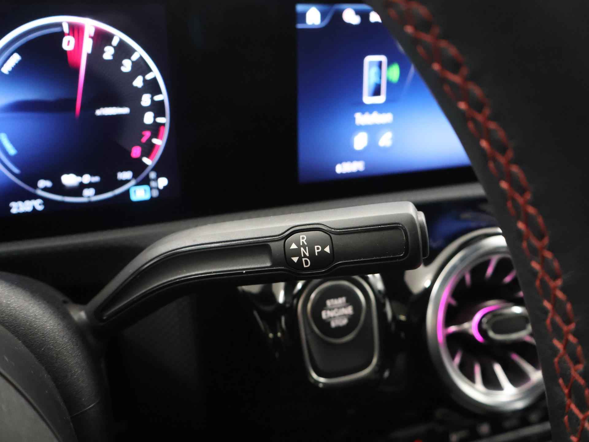 Stoer staal en superieure rijprestaties: dan weet u dat u met een Duits topmerk te maken heeft. De AMG-styling geeft dit model een elegante en opvallende uitstraling. Rijden met deze Mercedes-Benz CLA-klasse is energiezuinig, want de hybride motor combineert brandstof met elektriciteit. Minder vaak langs de pomp, dus dat scheelt! In weer een wind een cabrio-gevoel? Daarvoor zorgt het elektrisch bediende glazen panorama dak. En het moeiteloos in- en uitladen is te danken aan de elektrisch bedienbare achterklep. De verwarmbare voorstoelen zijn een heerlijke extra optie, waarmee u uzelf en uw bijrijder een groot plezier doet. Chauffeur en bijrijder zitten stabiel in de scherpe bochten door de sportstoelen. Het verwarmbare stuurwiel is een teken van ultieme luxe. Deze voorziening is een topklasse auto waardig. Voorzien van matrix LED-verlichting. De auto dimt precies dat deel van de lichtstraal waar de voor- of tegenliggers in rijden. De overige segmenten blijven aan en verlichten de weg. Bij de uitrusting van deze Mercedes-Benz horen onder meer 19 inch lichtmetalen velgen, AMG-styling, donker getint glas achter, in delen neerklapbare achterbank, LED-achterlichten en verstelbare lendensteunen. Wat ook opvalt, is de strakke en overzichtelijke informatie die het digitale dashboard levert. Ongelukken of parkeerschade? Dat gebeurt u niet meer, met de achteruitrijcamera. Communiceren met uw auto? Dat gaat via remote services. Met uw smartphone maakt u waar dan ook contact om allerlei functies te checken of te activeren. De luidsprekers van het high performance audiosysteem omringen u met een uitgebalanceerd geluid. Geef uw smartphone weer 100% met de draadloze telefoonlader. De uitrusting van deze auto is met dashboard met spraakbediening, navigatiesysteem met harde schijf, electronic climate control, DAB ontvangst, regensensor en cruise control behoorlijk compleet. Het rijden met deze Mercedes-Benz wordt nog meer ontspannen dankzij de innovatieve technieken die onderweg over uw veiligheid waken. Het Lane-keeping systeem zorgt dat u mooi binnen de lijntjes blijft. Ongemerkt buiten de rijstrook komen is er niet meer bij. Forward collision warning helpt u om kop-staart aanrijdingen te voorkomen. Met de vermoeidheidsassistent bent u ook op lange ritten veilig op pad. Het systeem geeft een waarschuwing zodra het tijd is voor een pauze. In deze Mercedes-Benz vinden we verder een dodehoekdetectie, autonoom remsysteem en bandenspanningcontrolesysteem. Maak nu een afspraak voor een proefrit!