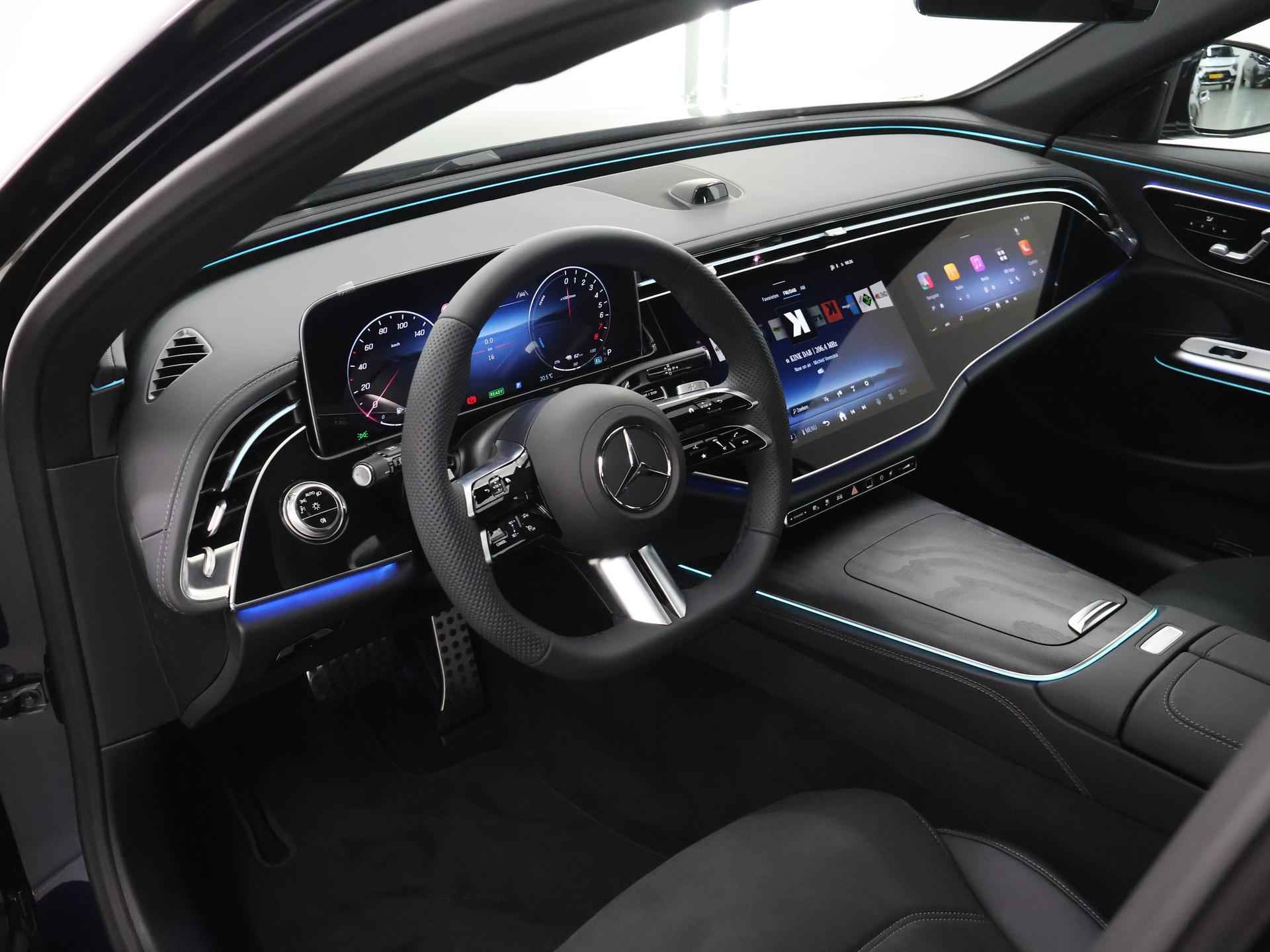 De Mercedes-Benz E-Klasse staat voor elegantie, comfort en innovatieve technologie. Deze uitvoering is voorzien van o.a. een panoramaschuifdak, trekhaak, 360° camera en DIGITAL LIGHT, waardoor elke rit niet alleen stijlvol maar ook veilig en praktisch is. Het indrukwekkende Superscreen zorgt voor een moderne en luxe ambiance in het interieur. Met de 20" AMG-velgen en stoelverwarming voor combineert deze E-Klasse sportieve uitstraling met hoogwaardig comfort – perfect voor wie alleen genoegen neemt met premium kwaliteit. Wij zijn Wensink, aangenaam. In onze Wensink Winkels bent u altijd welkom. U kunt bij ons elke dag kiezen uit nieuwe auto's en meer dan 1.500 kwaliteits-occasions tot 8 jaar die stuk voor stuk professioneel zijn geselecteerd, gecheckt en klaargemaakt door onze vakmensen. Echt aangenaam rijden noemen we dat. In onze winkel vindt u alles wat u nodig heeft om zorgeloos te rijden; verzekering, financiering, leasing, onderhoudsabonnementen, laadpaaloplossingen, en meer bij ons vindt u het. En het mooiste? U bepaalt zelf hoe en wanneer u uw auto wil kopen, volledig online en afgeleverd bij u thuis of via één van onze winkels dicht bij u in de buurt. U bepaalt.