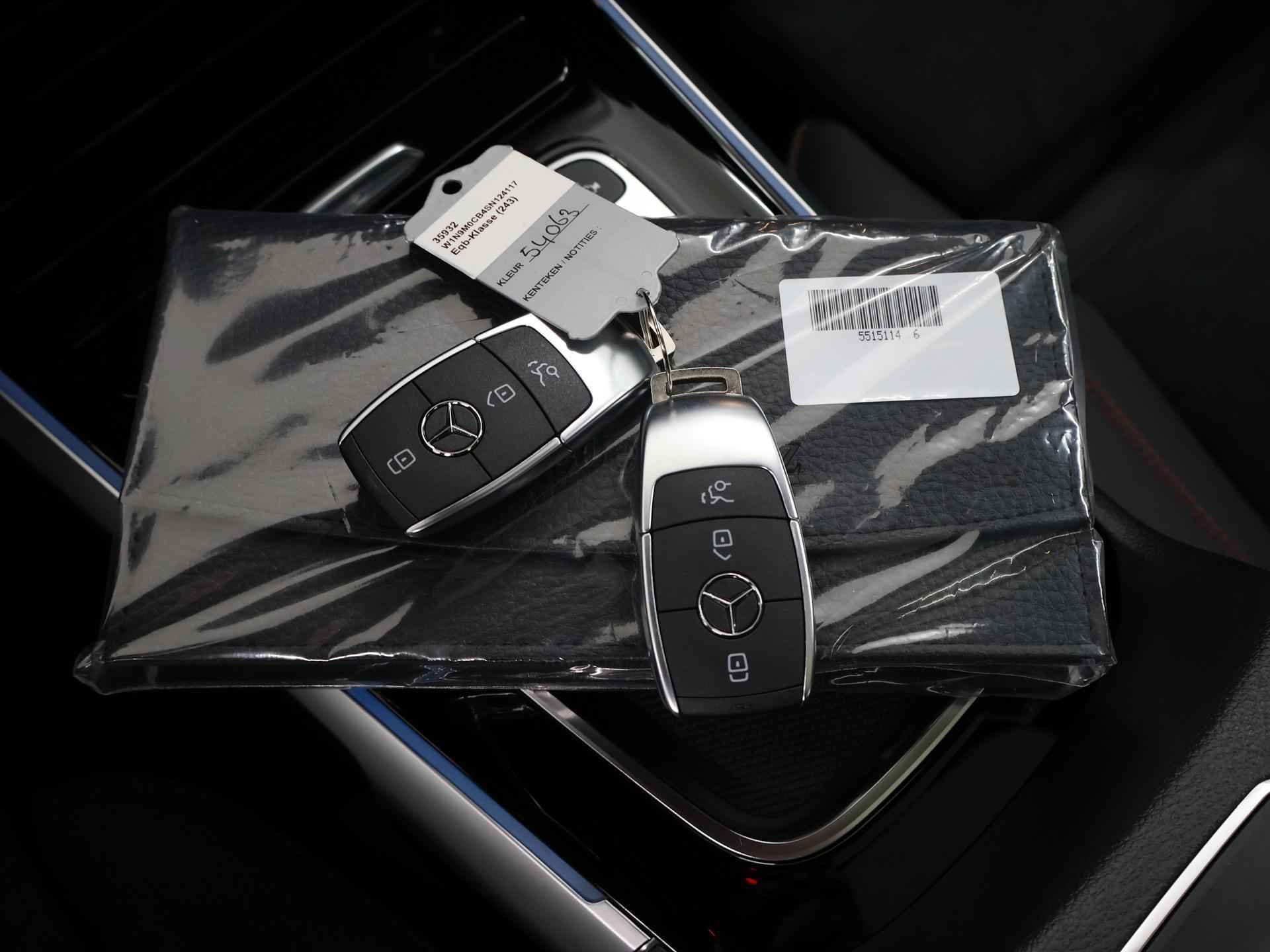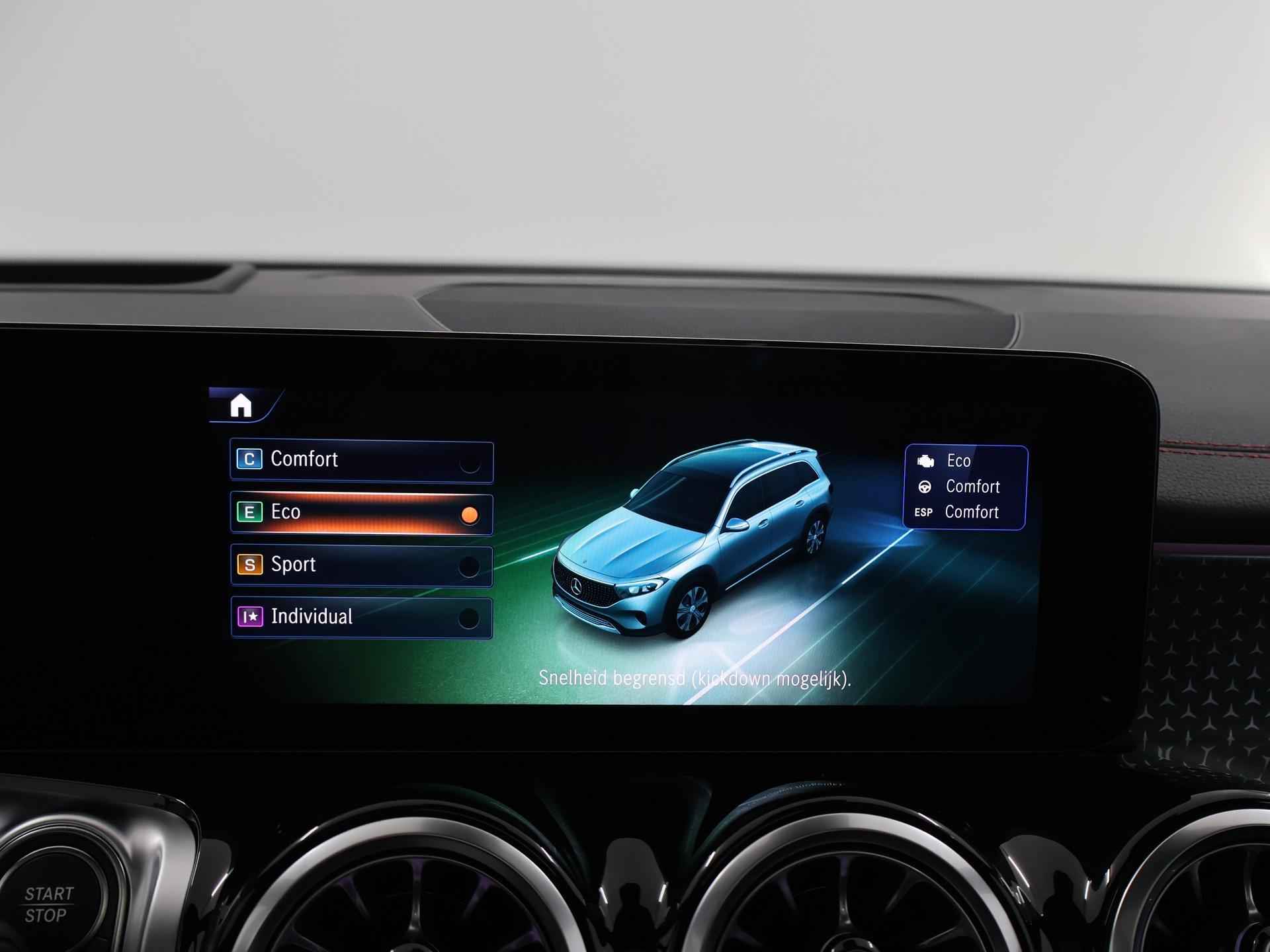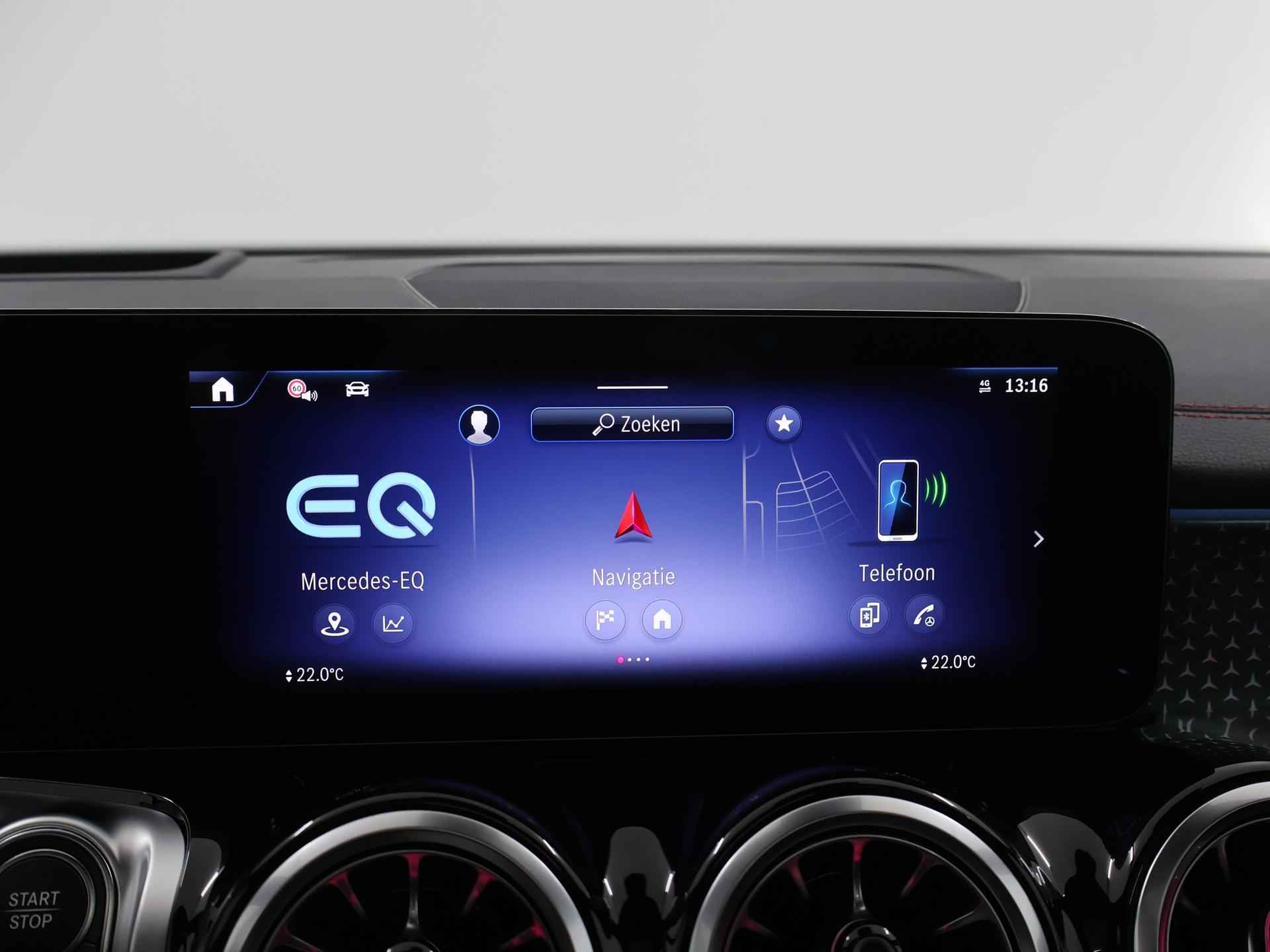 Dit is een demonstratieauto waardoor de actuele kilometerstand kan afwijken. Informeer naar onze voorwaarden en wijzigingen voorbehouden. Druk het gaspedaal in en voel de fenomenale kracht van de elektromotor. In een elektrische auto rijdt u tegelijk dynamisch en ontspannen. Wat een rijervaring, die elektromotor. Forse actieradius, nul uitstoot en heerlijk pittig rijgedrag! De elegante lijnvoering wordt versterkt door subtiele AMG-styling details. Dit is een splinternieuwe auto, die nu uit voorraad leverbaar is. Dankzij de elektrische stoelbediening is het gemakkelijk om de optimale zitpositie te vinden. Een heerlijk zonnetje, of indrukwekkende wolkenpartijen? Bekijk ze onbelemmerd door het elektrisch bediende glazen panoramadak. De elektrisch bedienbare achterklep opent met een druk op de knop. Ook LED koplampen, AMG-styling, warmtewerend glas, verstelbare lendensteunen en verstelbare achterbank zijn aan boord. Overzicht, informatie en functionaliteit: dat biedt het digitale dashboard. Met de 360 graden camera kunt u elk detail rond de auto zien, waardoor mogelijke schade door verkeerd inschatten van afstanden vermeden wordt. Als u 'm vraagt 'hoe gaat het?' geeft deze auto zelf het antwoord. Via de app op uw smartphone. U checkt de meters waar u maar wilt, of activeert diverse functies alvast. Ook het geluid aan boord is top-of-the-line. Het high performance audiosysteem levert superieure prestaties. Extra makkelijk is de draadloze telefoonlader. Met dashboard met spraakbediening, navigatiesysteem met harde schijf, electronic climate control, DAB ontvangst, regensensor en cruise control is deze auto helemaal compleet. De intelligente veiligheidssystemen in deze auto waken continu over uw veiligheid. Het Lane-keeping systeem doet precies wat nodig is: waarschuwen en corrigeren bij onbedoelde overschrijding van de rijstrooklijnen. Het risico van een kop-staartbotsing wordt aanzienlijk verminderd door de forward collision warning. Het laatste wat u wilt is dat u achter het stuur indommelt. Om dat te voorkomen is deze auto uitgerust met vermoeidheidsherkenning. De veiligheid van deze auto wordt verder verhoogd door dodehoekdetectie, hill hold functie, autonoom remsysteem en bandenspanningcontrolesysteem. Hebben we uw interesse gewekt? Deze EQB staat nu voor u klaar, u bent van harte welkom om hem te komen bekijken. Dan vertellen we u ook meteen over de financieringsvormen die we u kunnen aanbieden. Belt u ons vandaag nog?
