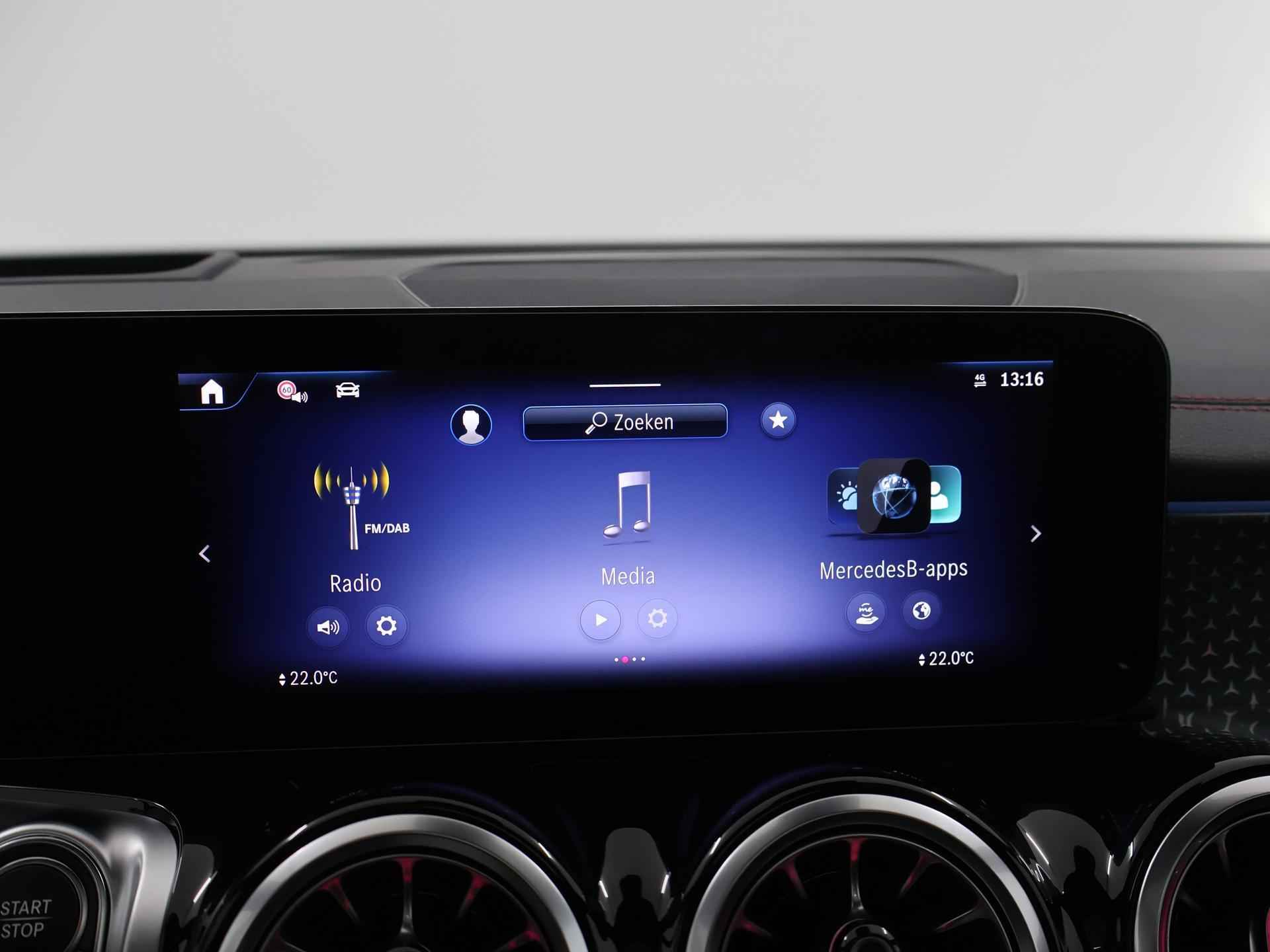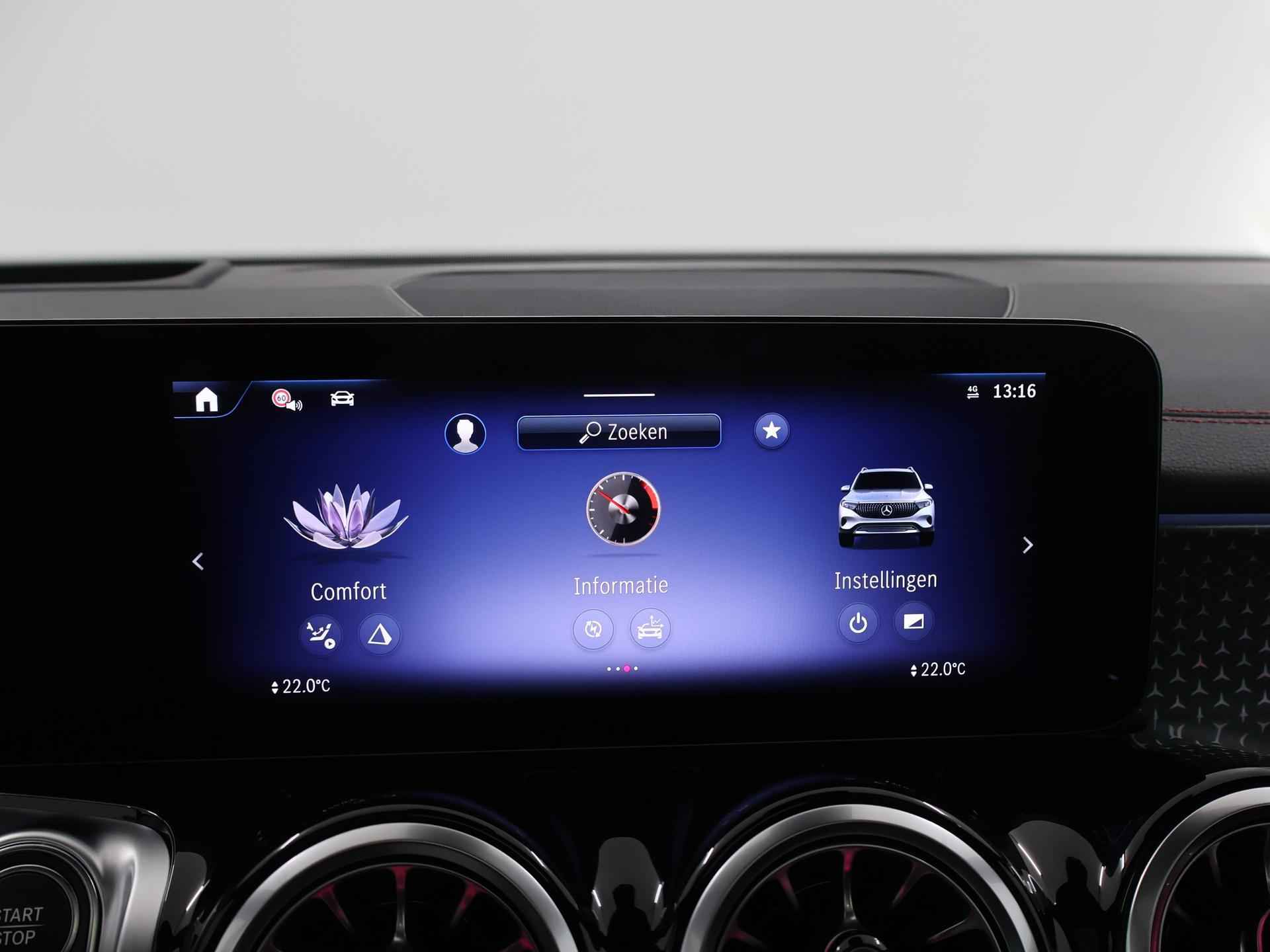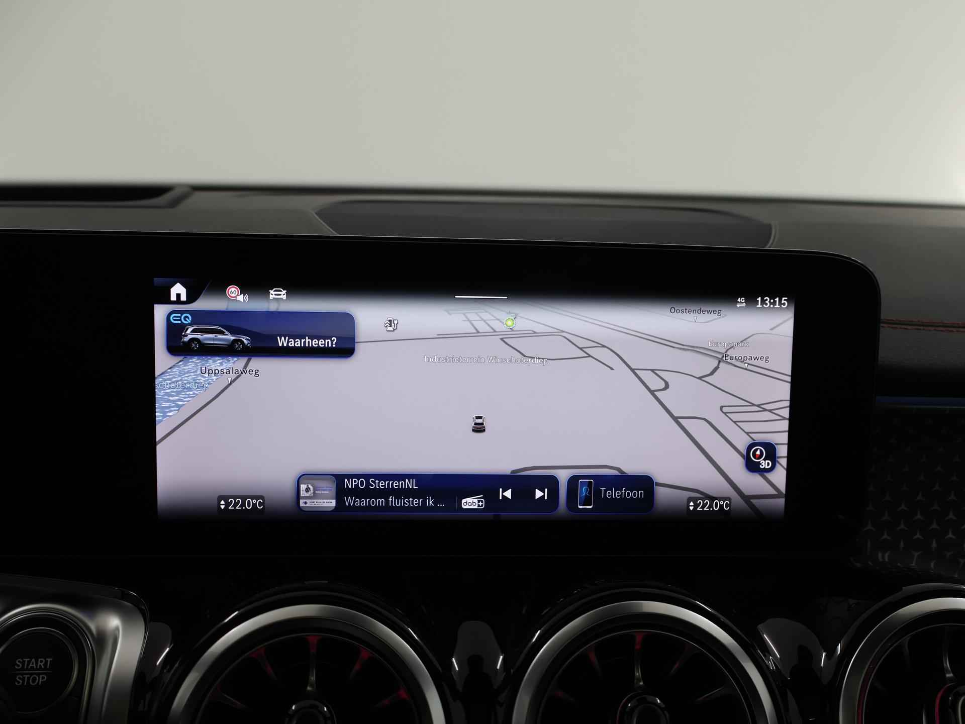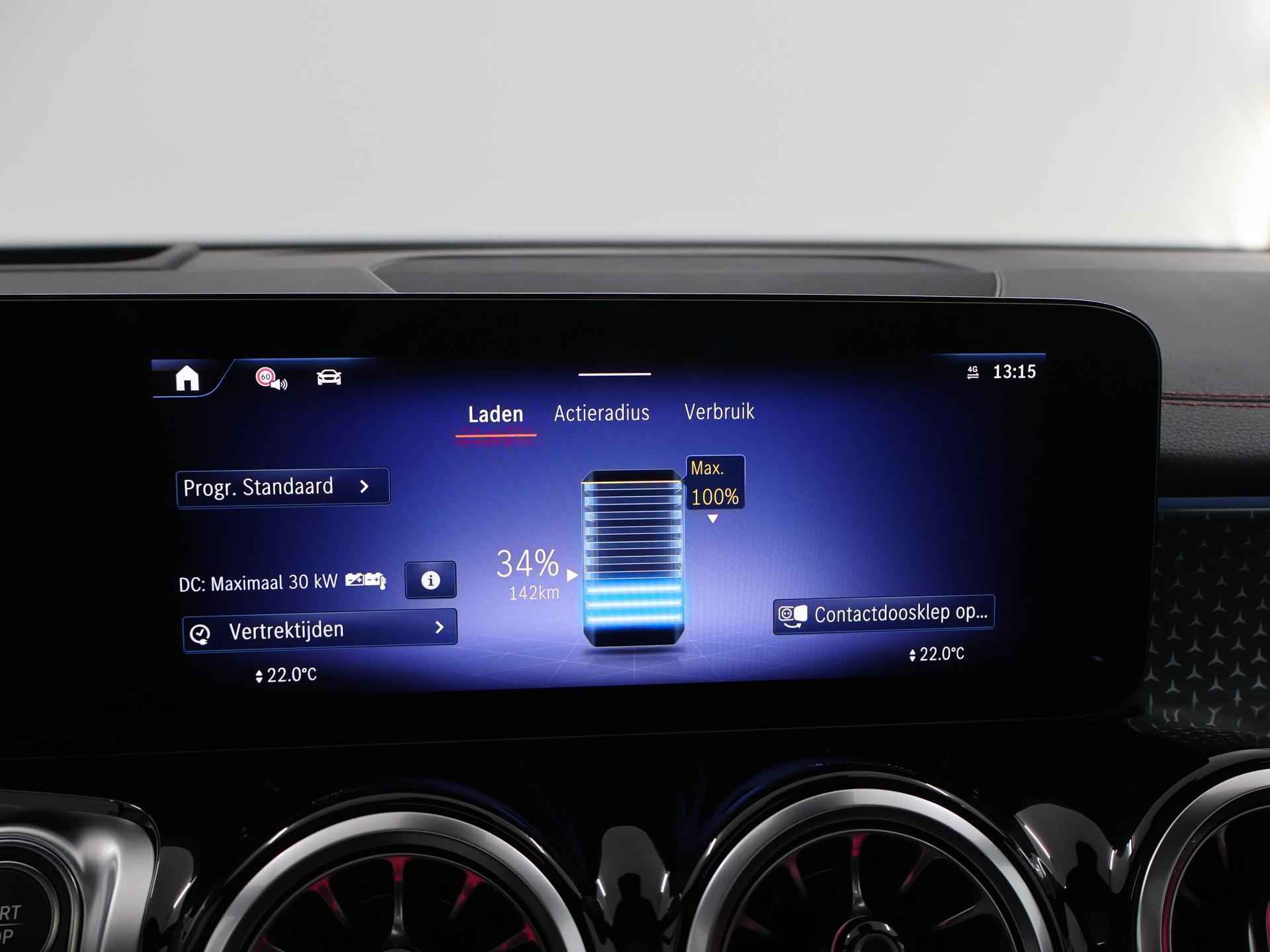 Dit is een demonstratieauto waardoor de actuele kilometerstand kan afwijken. Informeer naar onze voorwaarden en wijzigingen voorbehouden. Druk het gaspedaal in en voel de fenomenale kracht van de elektromotor. In een elektrische auto rijdt u tegelijk dynamisch en ontspannen. Wat een rijervaring, die elektromotor. Forse actieradius, nul uitstoot en heerlijk pittig rijgedrag! De elegante lijnvoering wordt versterkt door subtiele AMG-styling details. Dit is een splinternieuwe auto, die nu uit voorraad leverbaar is. Dankzij de elektrische stoelbediening is het gemakkelijk om de optimale zitpositie te vinden. Een heerlijk zonnetje, of indrukwekkende wolkenpartijen? Bekijk ze onbelemmerd door het elektrisch bediende glazen panoramadak. De elektrisch bedienbare achterklep opent met een druk op de knop. Ook LED koplampen, AMG-styling, warmtewerend glas, verstelbare lendensteunen en verstelbare achterbank zijn aan boord. Overzicht, informatie en functionaliteit: dat biedt het digitale dashboard. Met de 360 graden camera kunt u elk detail rond de auto zien, waardoor mogelijke schade door verkeerd inschatten van afstanden vermeden wordt. Als u 'm vraagt 'hoe gaat het?' geeft deze auto zelf het antwoord. Via de app op uw smartphone. U checkt de meters waar u maar wilt, of activeert diverse functies alvast. Ook het geluid aan boord is top-of-the-line. Het high performance audiosysteem levert superieure prestaties. Extra makkelijk is de draadloze telefoonlader. Met dashboard met spraakbediening, navigatiesysteem met harde schijf, electronic climate control, DAB ontvangst, regensensor en cruise control is deze auto helemaal compleet. De intelligente veiligheidssystemen in deze auto waken continu over uw veiligheid. Het Lane-keeping systeem doet precies wat nodig is: waarschuwen en corrigeren bij onbedoelde overschrijding van de rijstrooklijnen. Het risico van een kop-staartbotsing wordt aanzienlijk verminderd door de forward collision warning. Het laatste wat u wilt is dat u achter het stuur indommelt. Om dat te voorkomen is deze auto uitgerust met vermoeidheidsherkenning. De veiligheid van deze auto wordt verder verhoogd door dodehoekdetectie, hill hold functie, autonoom remsysteem en bandenspanningcontrolesysteem. Hebben we uw interesse gewekt? Deze EQB staat nu voor u klaar, u bent van harte welkom om hem te komen bekijken. Dan vertellen we u ook meteen over de financieringsvormen die we u kunnen aanbieden. Belt u ons vandaag nog?