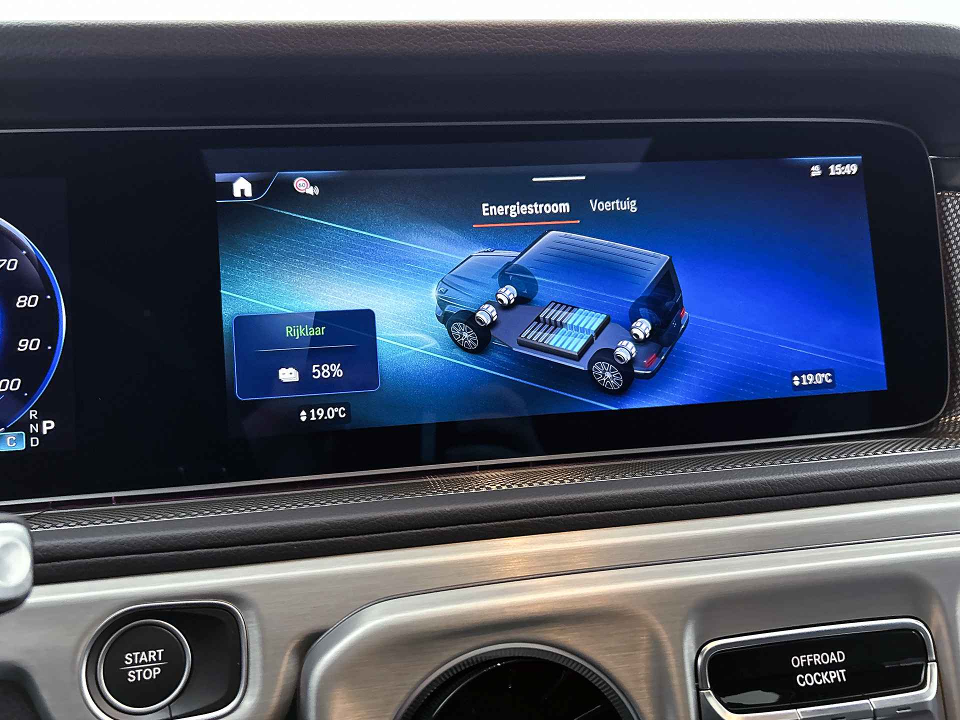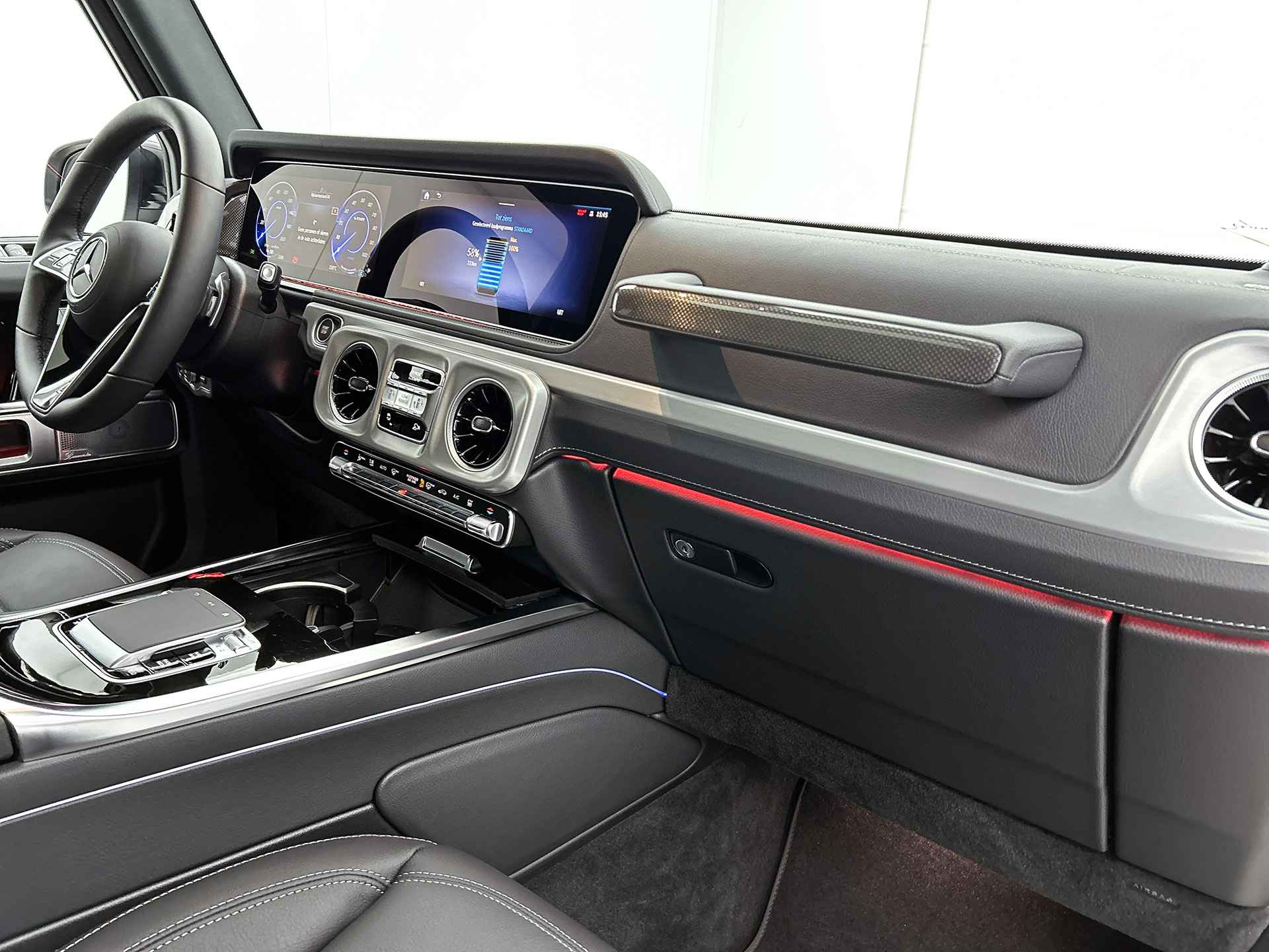 Duurzaam en dynamisch, de Mercedes-Benz G-klasse verenigt deze twee uitersten in zich. Dit is een auto uit 2025, er staat 3143 kilometer op de teller. De batterijtechniek heeft de afgelopen jaren enorme vooruitgang geboekt, zodat jij met deze auto op een volle acculading echt ver kunt komen. En als je de auto 's avonds aan de lader koppelt, is hij de volgende dag weer helemaal vol. Een krachtige motor geeft deze auto zijn sportieve prestaties. Van binnen zie je een lederen interieur, een stijlvolle uitvoering. Voor en achter: iedereen dezelfde luxe. Vandaar de verwarmde achterbank. De vier camera's genereren samen een 360 graden beeld rond de auto, zodat je een volledig overzicht hebt van wat er rondom jouw auto gebeurt. Extra opties op deze auto zijn: navigatiesysteem met groot kleurenscherm, multifunctioneel lederen stuur en DAB+ radio. In deze auto zijn verschillende technologieën aanwezig die voor jou het verkeer en de omgeving in de gaten houden en die desnoods ook kunnen remmen of bijsturen. Bij afslaan en inhalen waarschuwt de actieve dodehoekdetectie meteen als er gevaar is vanwege voertuigen buiten je zichtveld. Met het accident avoidance system geeft je een extra paar ogen aan boord. Het systeem waarschuwt bij een dreigende aanrijding. Neem contact op voor een proefrit en ervaar de power van elektrisch rijden.