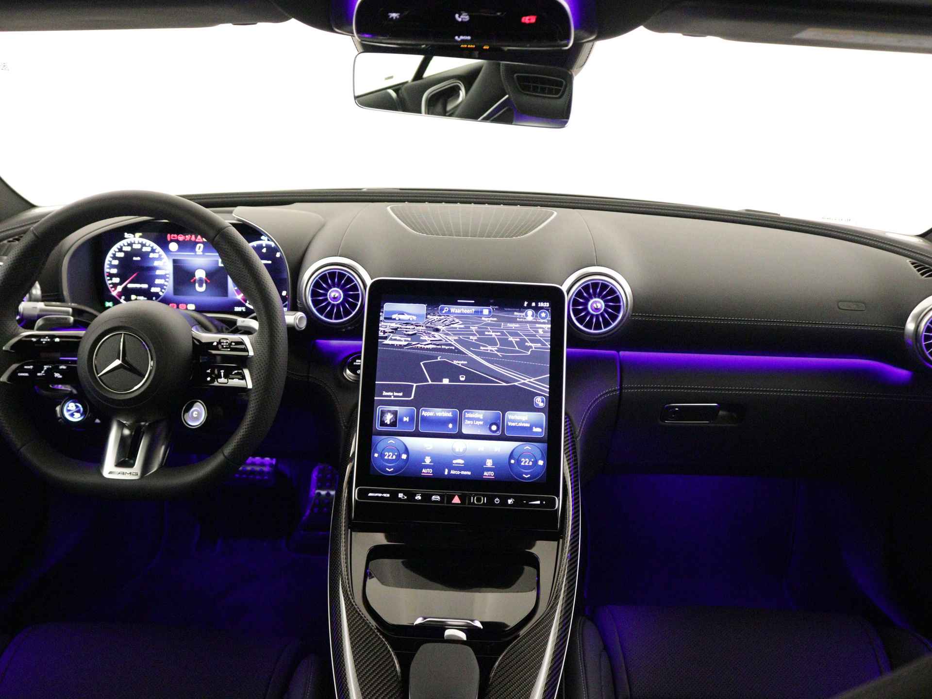Dit betreft een Company Car, wij informeren u graag over de actuele kilometerstand en beschikbaarheid. Zodra de zon zich laat zien, kunt je heerlijk genieten achter het stuur van deze cabriolet. Gebouwd voor vele jaren rijplezier waarbij comfort en veiligheid op de eerste plaats staan, dat is deze typisch Duitse Mercedes-Benz SL-klasse. En heel aantrekkelijk is de stoere, sportieve amg nightpakket. Het is een nieuwe auto, hij is nu uit voorraad leverbaar. In deze auto vind je een benzinemotor en een automatische transmissie. Ouderwets vakmanschap en natuurlijke materialen komen samen in het lederen interieur. Zit je goed? De stoelen zijn eenvoudig instelbaar dankzij de elektrische bediening met geheugen. Een praktische extra is de elektrisch bedienbare achterklep die opent en sluit met een druk op de knop. Het glazen panoramadak laat jou genieten van een wijds uitzicht en meer lichtinval. Stramme vingers krijgen 's winters een VIP-behandeling van het verwarmd stuurwiel. Natuurlijk behoren 19 inch lichtmetalen velgen, LED koplampen, amg nightpakket, sportonderstel, warmtewerend glas en elektrisch inklapbare buitenspiegels ook tot de uitrusting van deze complete auto. Met de hulp van vier camera's, biedt de 360 graden camera op deze auto een panoramisch zicht, wat bijzonder nuttig is bij het parkeren en manoeuvreren. Een veiligheidsverhogende optie is de ingebouwde spraakbediening. Terwijl jij jouw ogen op de weg houdt, bedien je de auto met je stem. De speciale app verbindt met Connected Services, die de status van vitale functies bijhoudt en waarschuwt als je bijvoorbeeld moet tanken, de bandenspanning moet controleren of olie moet bijvullen. Er is geen bestemming die het aanwezige navigatiesysteem met harde schijf niet kent. Dat rijdt lekker! Omdat je nu eenmaal niet overal ogen hebt, is deze Mercedes-Benz SL-klasse voorzien van een achteropkomend verkeer waarschuwing die registreert wanneer de afstand tot je achterligger te krap is. De uitrusting van deze Mercedes-Benz is met electronic climate control, DAB+ radio, regensensor, cruise control, keyless Go en automatisch dimmende binnen- en buitenspiegels behoorlijk compleet. In de Mercedes-Benz SL-klasse heeft jouw veiligheid en die van jouw omgeving prioriteit. Ogen op de weg en toch alle dashboardinfo in beeld? Daar zorgt de head-up display voor! Onderweg fungeert de verkeersbord-detectie als het ware als jouw bijrijder en attendeert je op de verkeersborden langs de weg. In een noodsituatie waarschuwt forward collision warning bij een dreigende aanrijding met een voorligger. Ook helpen het hill hold functie, brake assist, vermoeidheidsherkenning en bandenspanningcontrolesysteem, jouw rit tot een veilige rit te maken. We kunnen ons voorstellen dat je deze auto wilt bekijken. We laten de auto graag aan je zien, dan vertellen we je meteen welke financieringsvormen we je eventueel kunnen bieden.